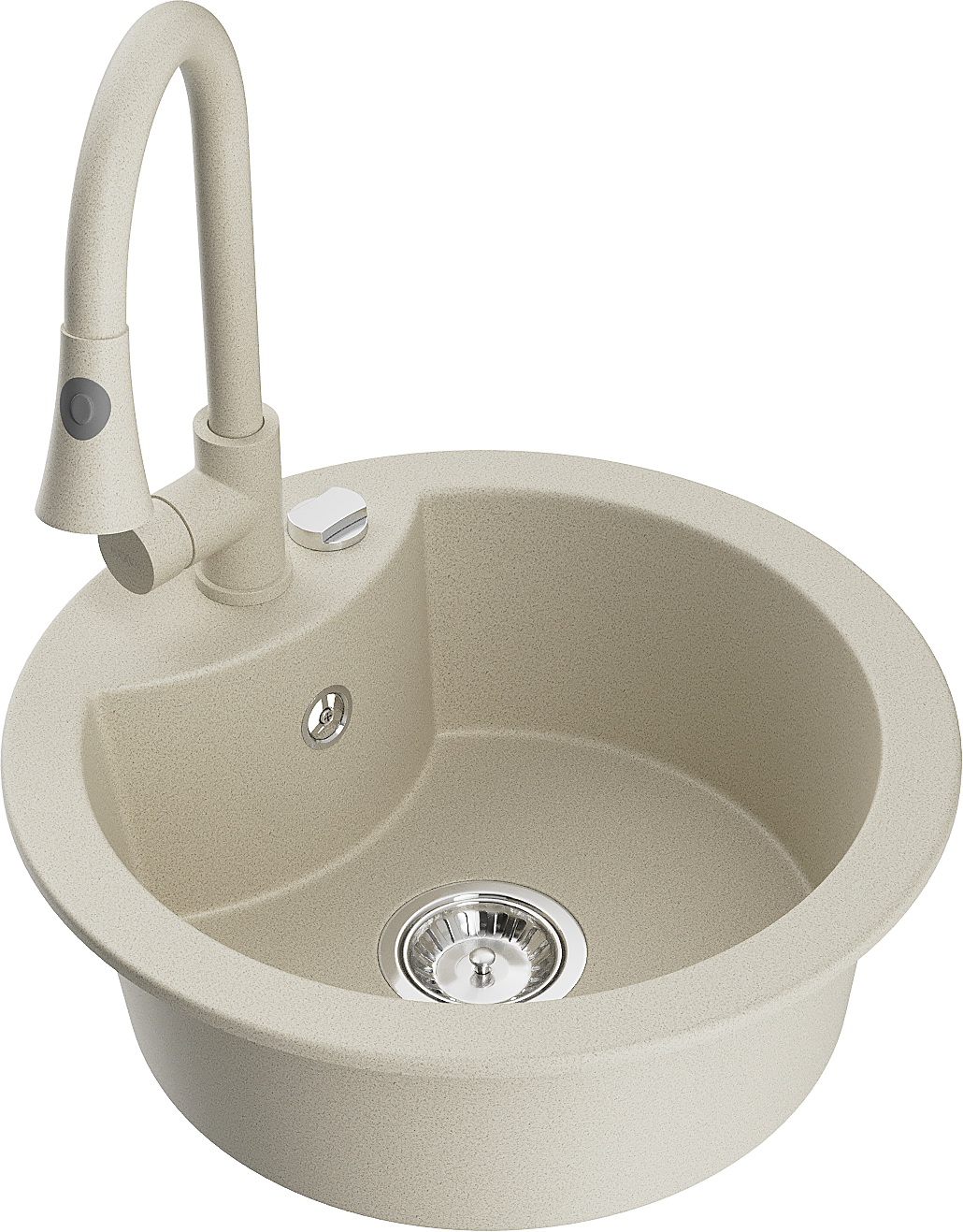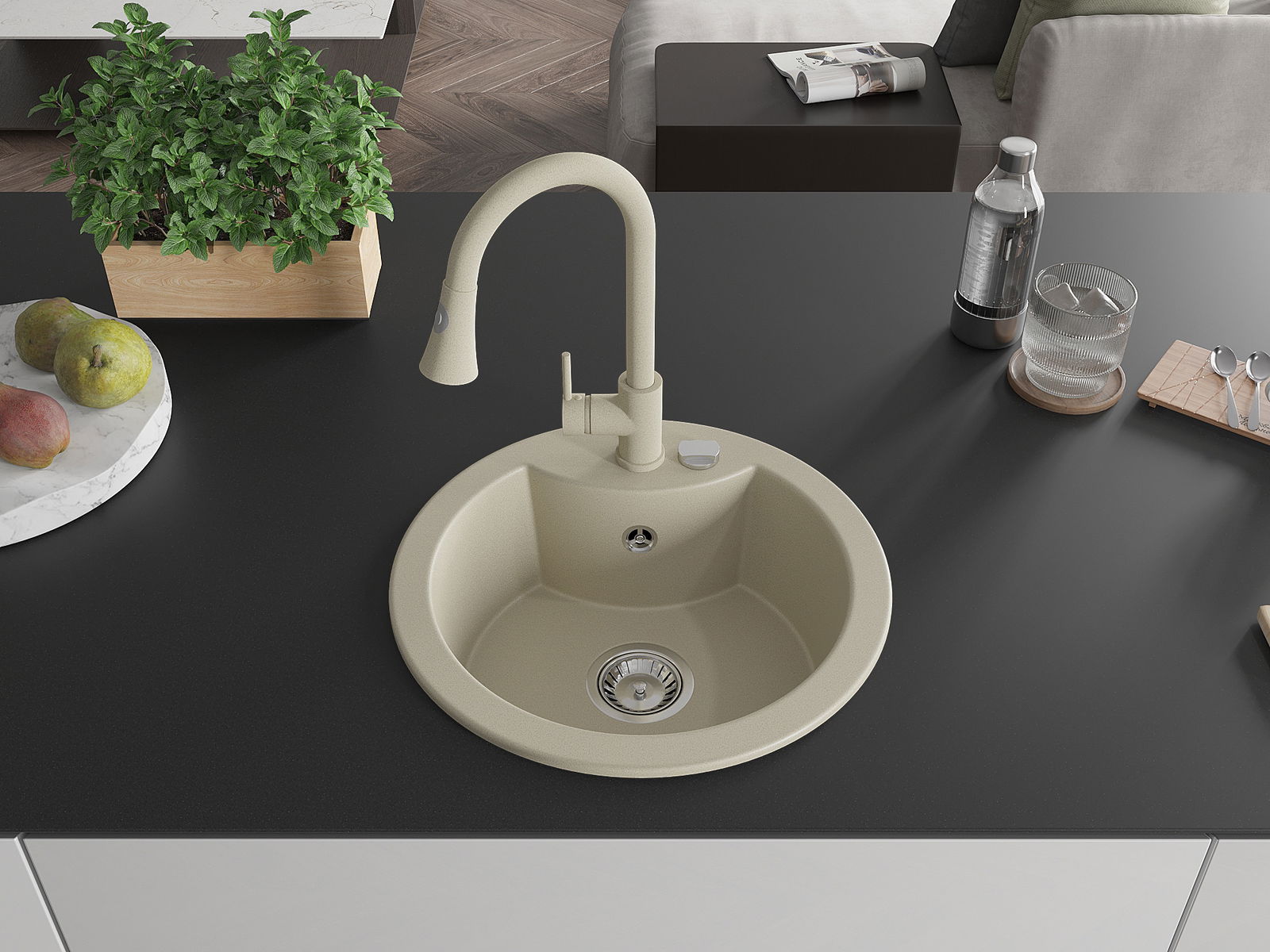 Mexen Diego granitový drez 1-komorový s kuchynskou batériou Elia, béžový - 6512-69-670101-69