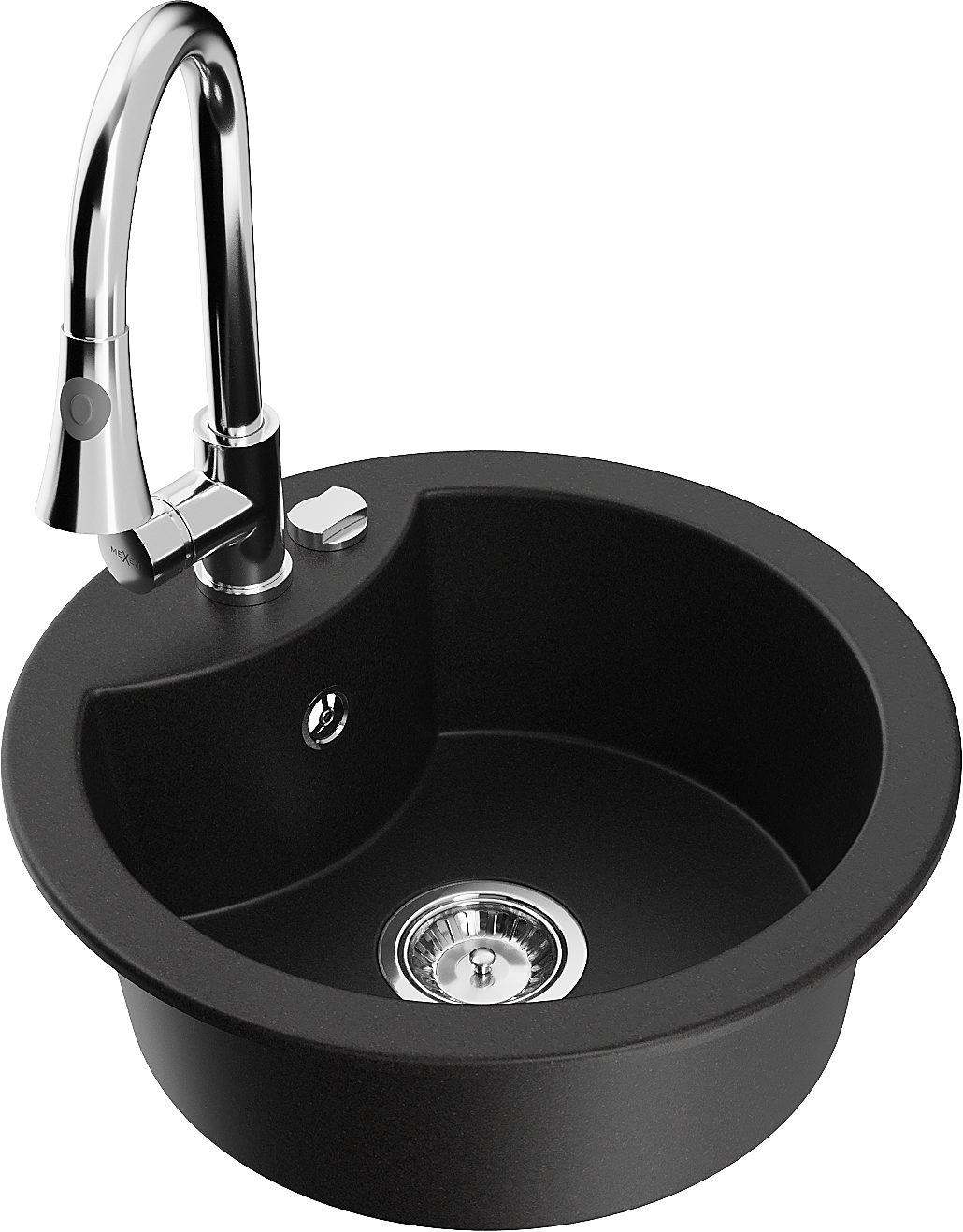 Mexen Diego granitový drez 1-komorový s kuchynskou batériou Elia, čierny - 6512-77-670101-00