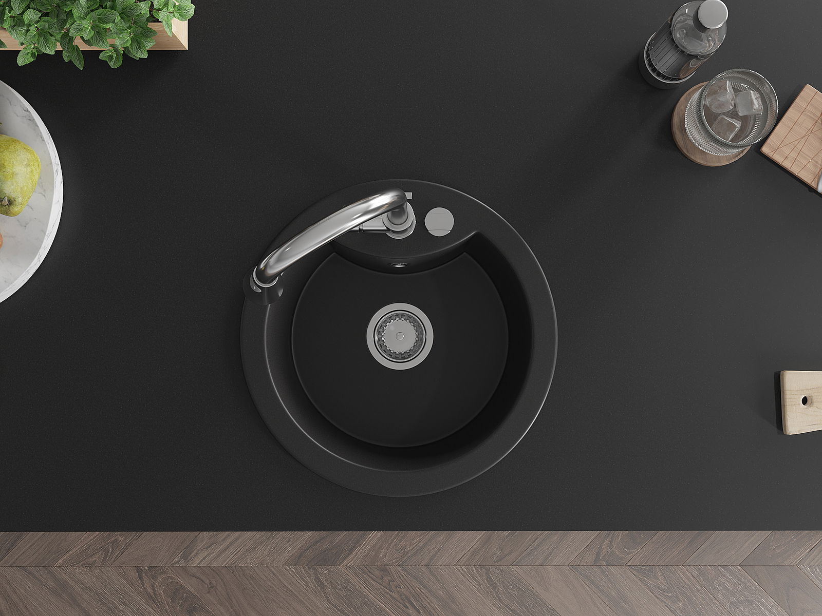 Povrch umývadla je odolný voči škvrnám a sfarbeniu, vďaka čomu sa ľahko čistí a zachováva si svoju farbu po dlhú dobu. Estetický a prakticky dopĺňajúci každú kuchyňu.