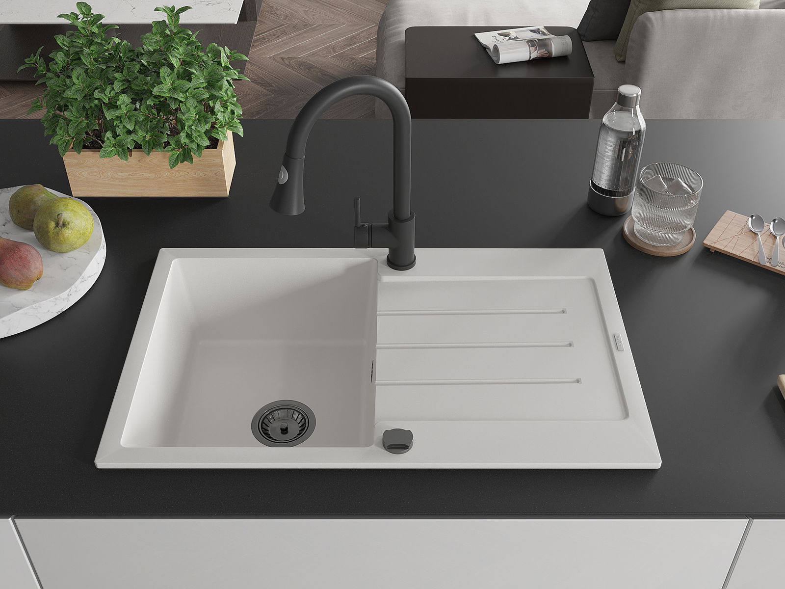 Drez bol vyrobený z vysoko kvalitného granitu. Predstavuje elegantný a predovšetkým praktický doplnok každej kuchyne, nezávisle od jej štýlu. Vysoká kvalita a trvácnosť granitu zaručujú mnohoročné používanie.