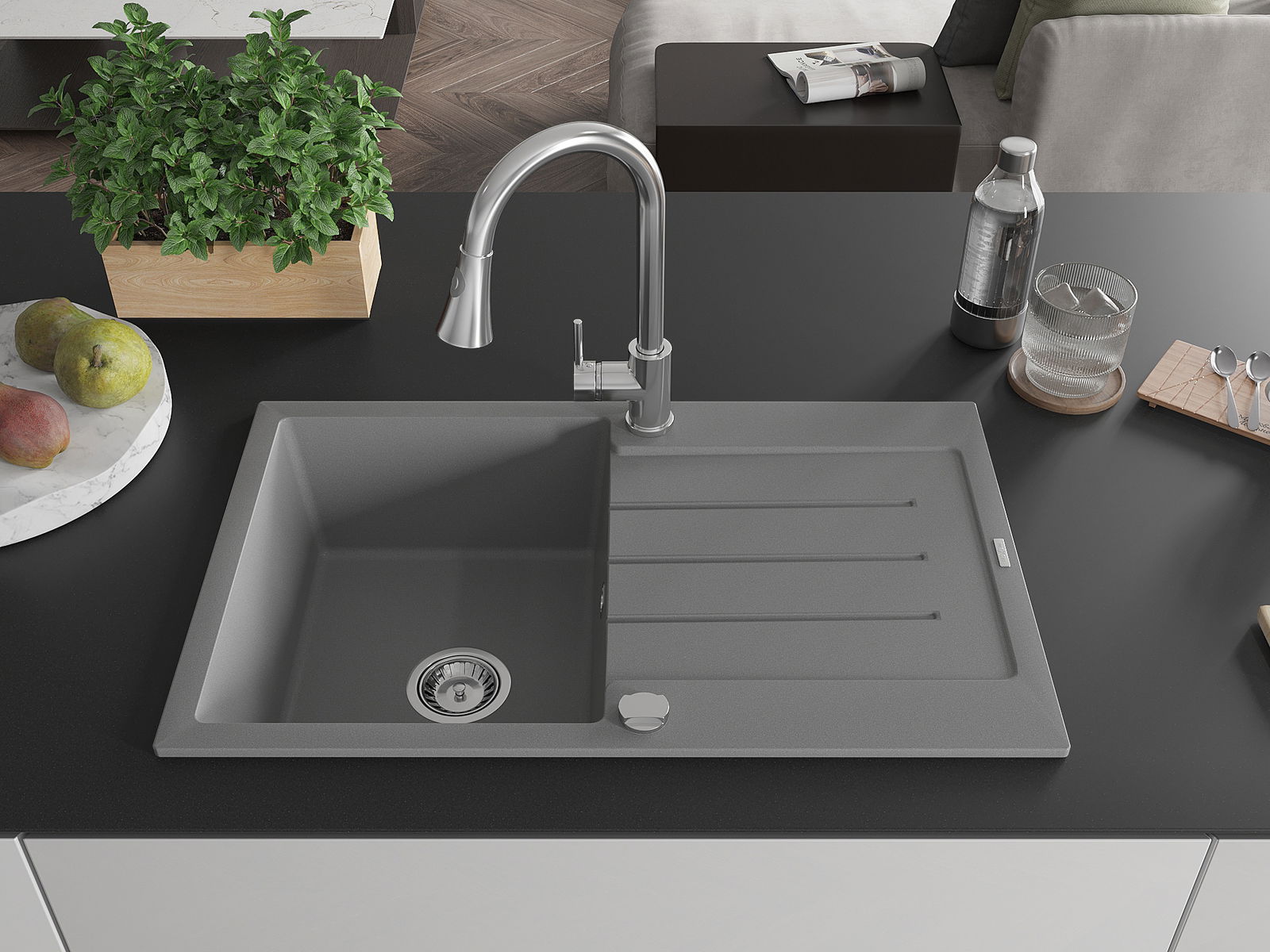 Povrch umývadla je odolný voči škvrnám a sfarbeniu, vďaka čomu sa ľahko čistí a zachováva si svoju farbu po dlhú dobu. Estetický a prakticky dopĺňajúci každú kuchyňu.