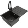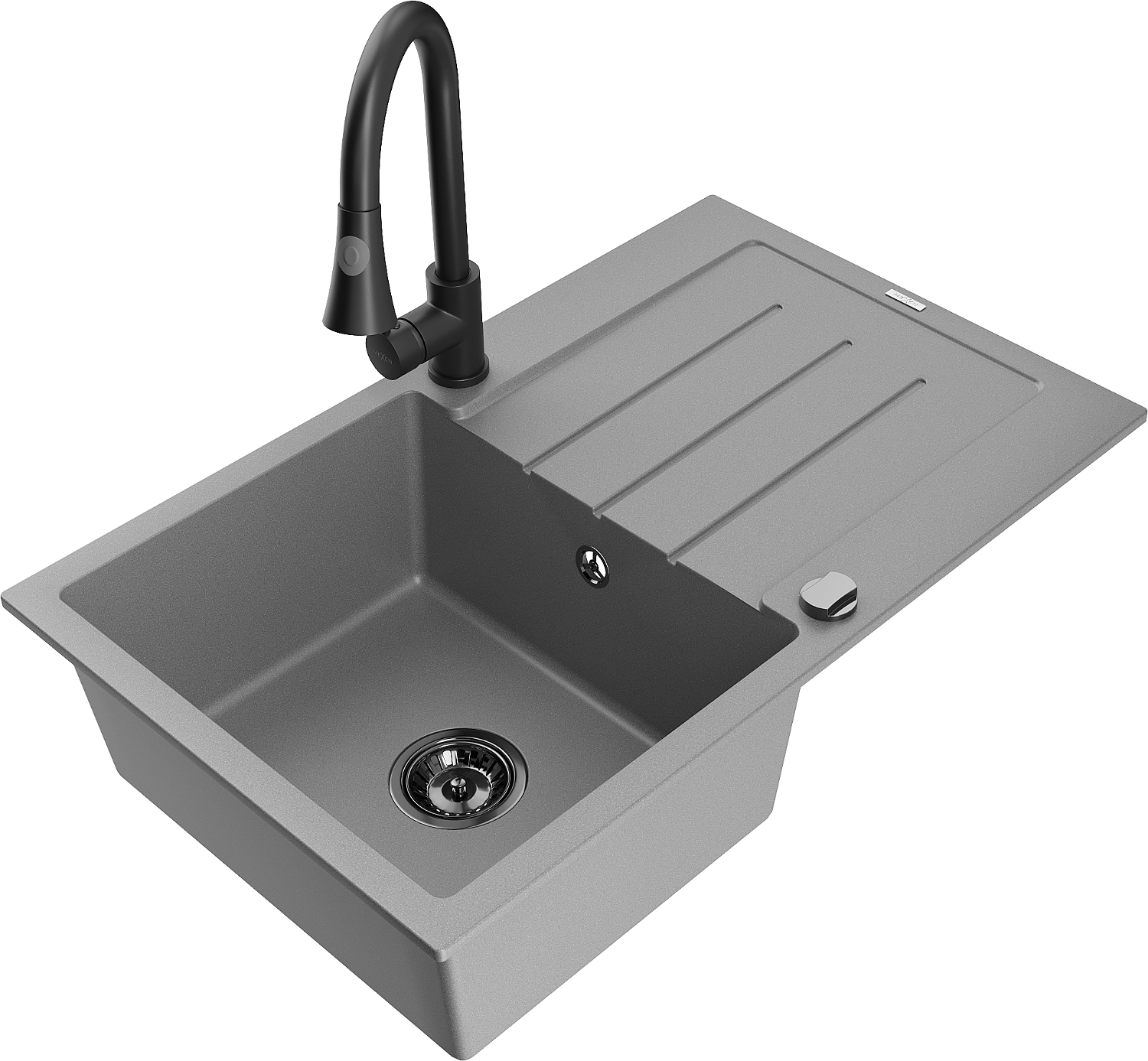 Mexen Bruno granitový kuchynský drez s 1 komorou a odkvapkávačom a kuchynskou batériou Elia, sivý - 6513-71-670101-70-B