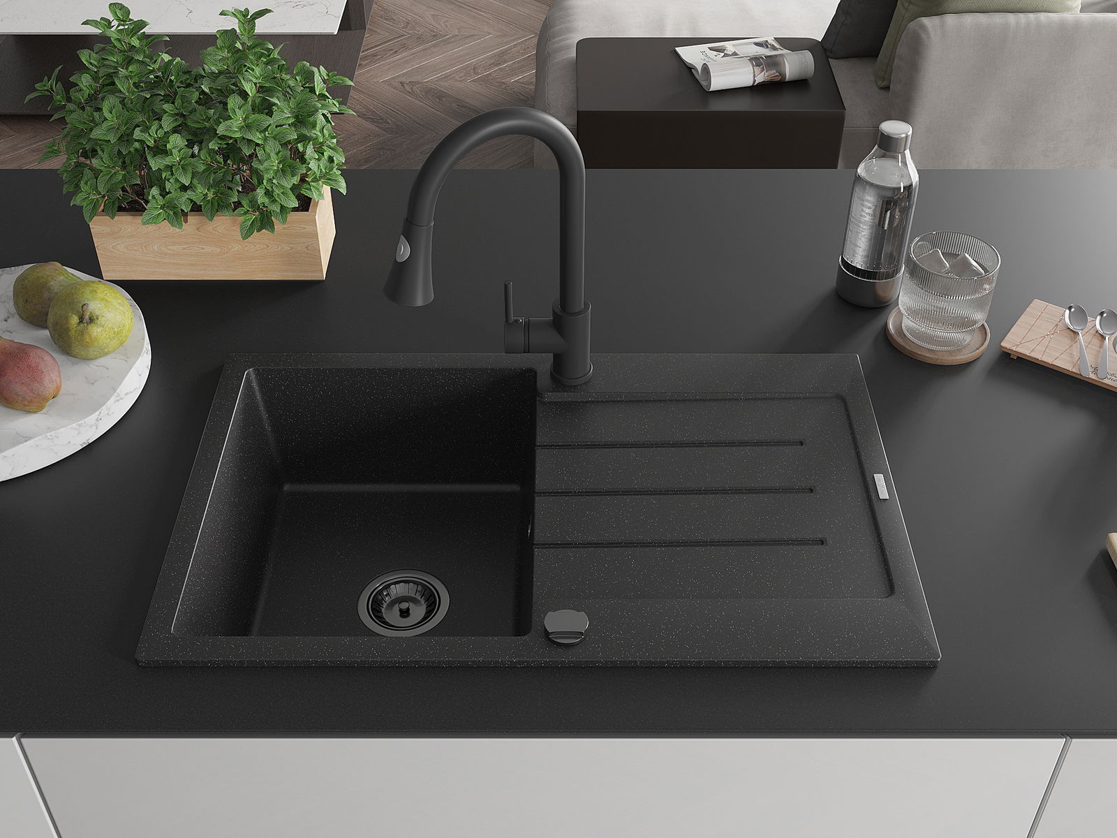 Drez bol vyrobený z vysoko kvalitného granitu. Predstavuje elegantné, ale predovšetkým praktické doplnenie každej kuchyne, nezávisle od jej štýlu. Vysoká kvalita a trvácnosť granitu zaisťujú dlhodobé používanie.