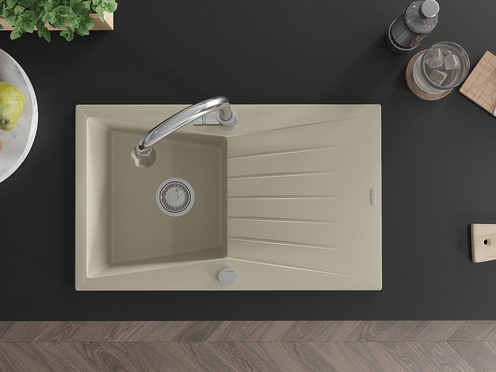 Povrch umývadla je odolný voči škvrnám a sfarbeniu, vďaka čomu sa ľahko čistí a zachováva si svoju farbu po dlhú dobu. Estetický a prakticky dopĺňajúci každú kuchyňu.