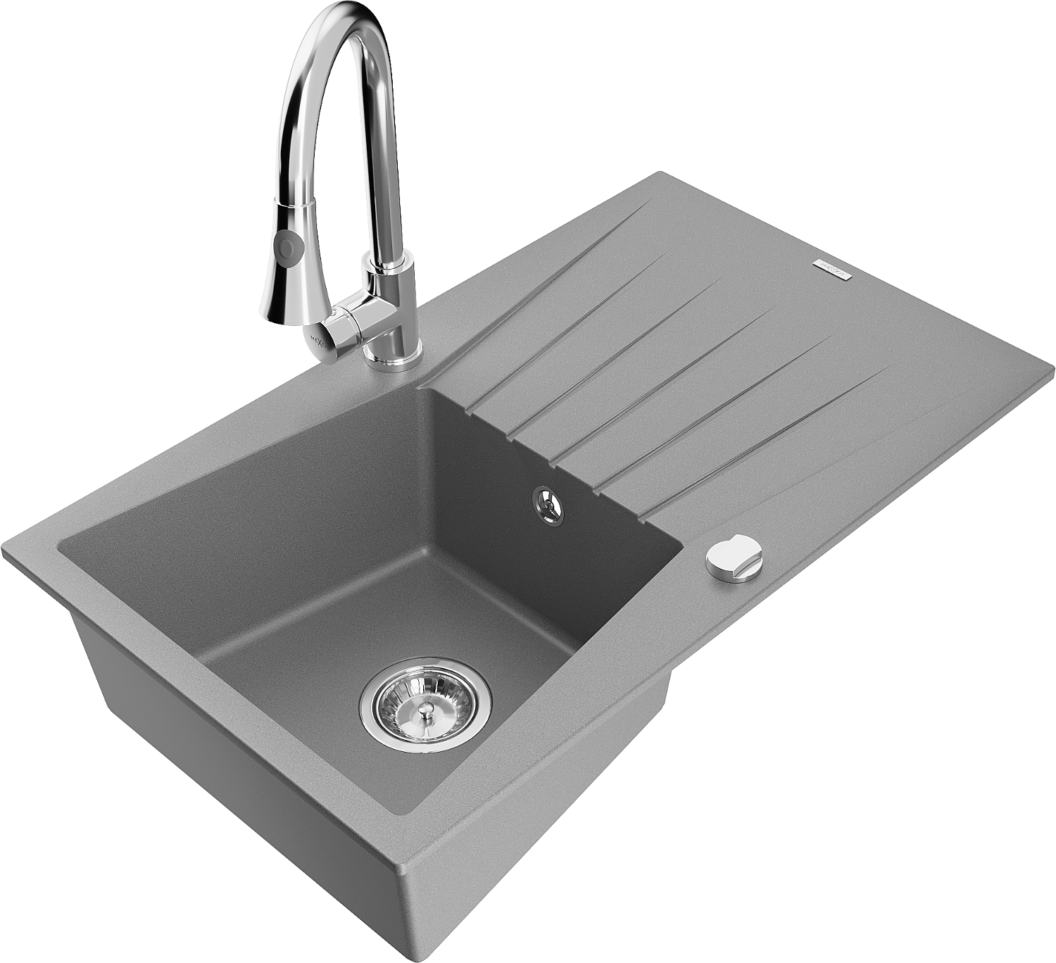 Mexen Cesar žulový drez s odkvapkávačom a kuchynskou batériou Elia, sivý - 6514-71-670101-00