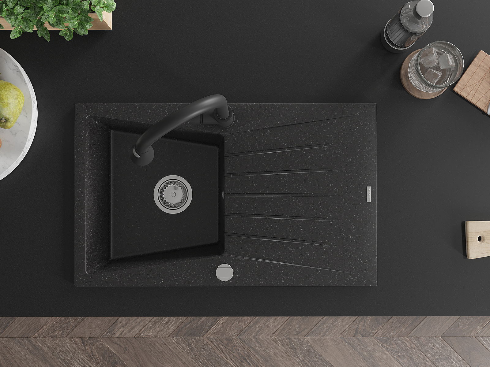 Povrch umývadla je odolný voči škvrnám a sfarbeniu, vďaka čomu sa ľahko čistí a zachováva si svoju farbu po dlhú dobu. Estetický a prakticky dopĺňajúci každú kuchyňu.