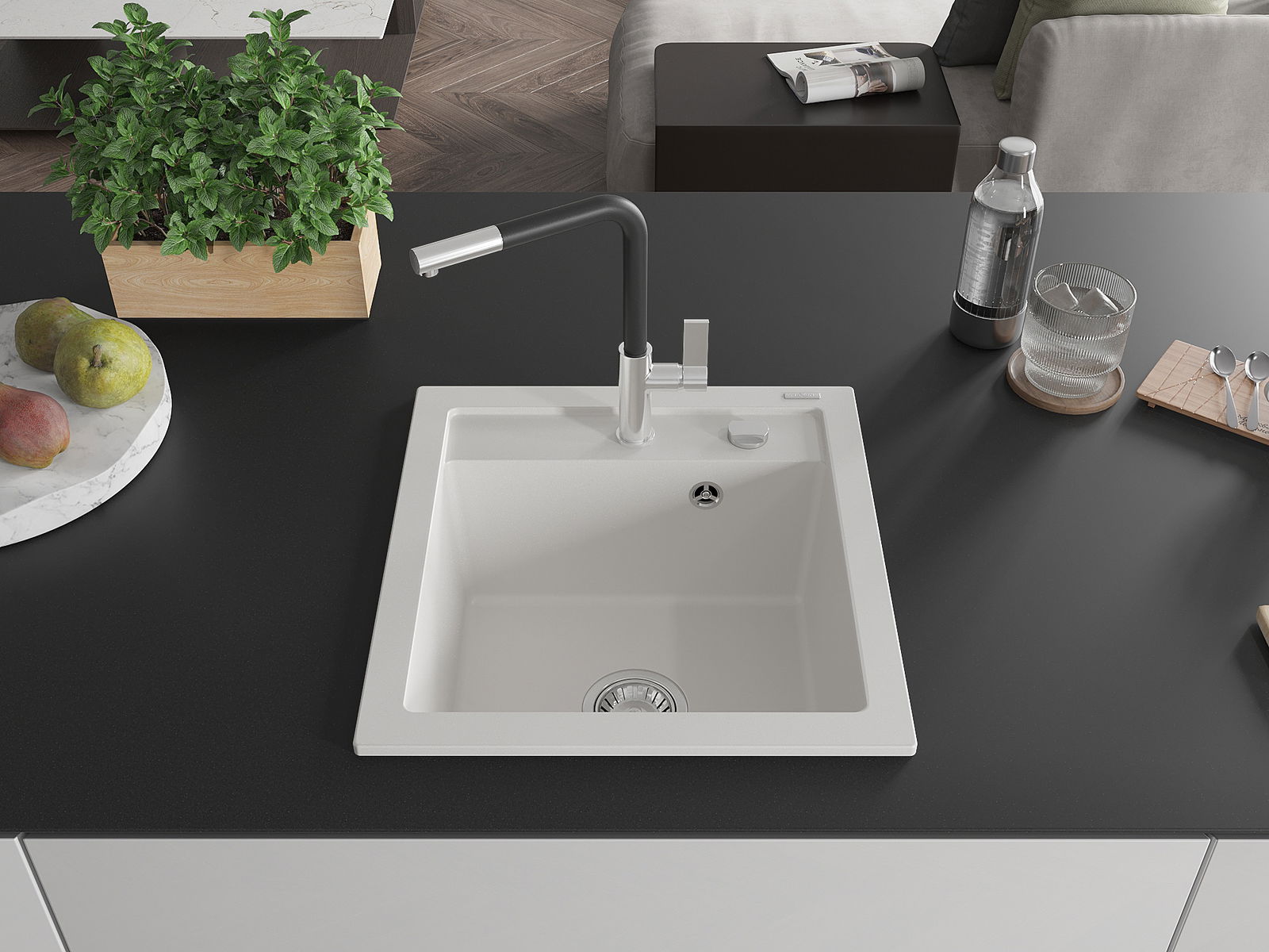 Povrch umývadla je odolný voči škvrnám a sfarbeniu, vďaka čomu sa ľahko čistí a zachováva si svoju farbu po dlhú dobu. Estetický a prakticky dopĺňajúci každú kuchyňu.