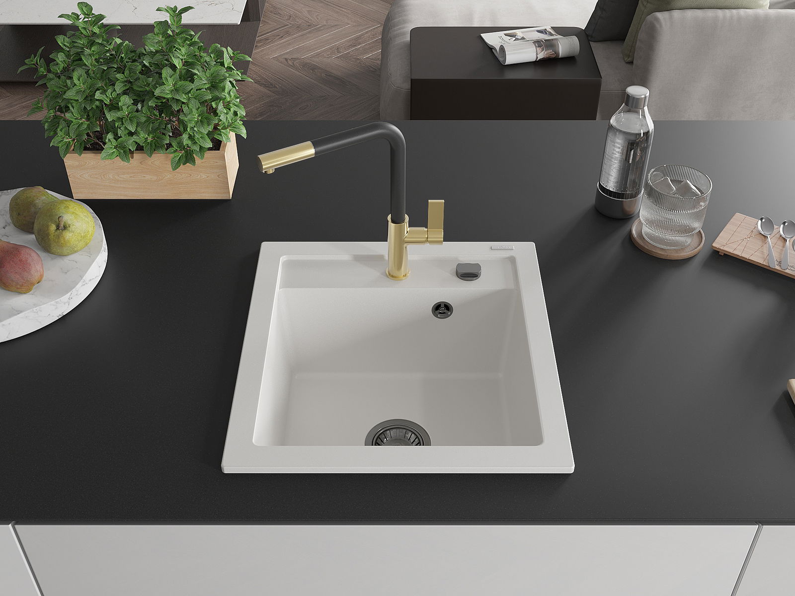 Povrch umývadla je odolný voči škvrnám a sfarbeniu, vďaka čomu sa ľahko čistí a zachováva si svoju farbu po dlhú dobu. Estetický a prakticky dopĺňajúci každú kuchyňu.