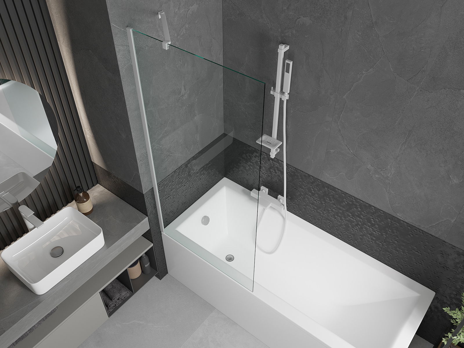 Účinná ochrana pred rozliatím vody počas kúpania. Obrazovka obsahuje tesnenia, ktoré sa dokonale prispôsobia pohárovi skla a okraja vane. Funkčné riešenie zabezpečujúce bezpečnosť a ľahkú údržbu.