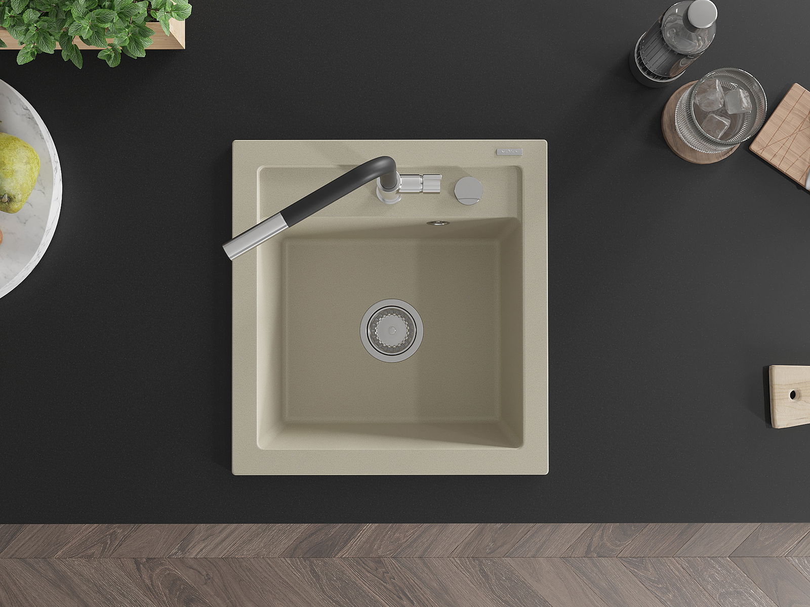 Povrch umývadla je odolný voči škvrnám a sfarbeniu, vďaka čomu sa ľahko čistí a zachováva si svoju farbu po dlhú dobu. Estetický a prakticky dopĺňajúci každú kuchyňu.