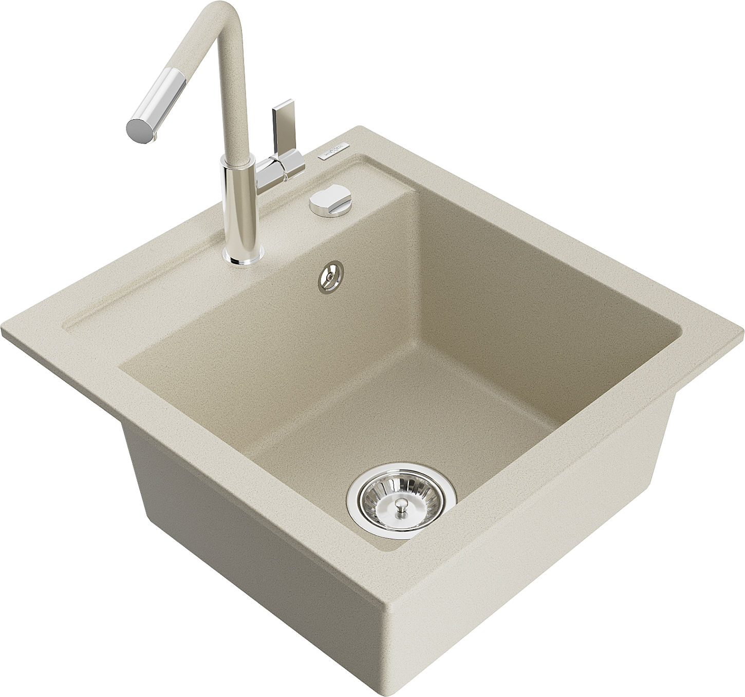 Mexen Vito jednokomorový granitový drez s kuchynskou batériou Flora, béžový - 6503-69-670401-09