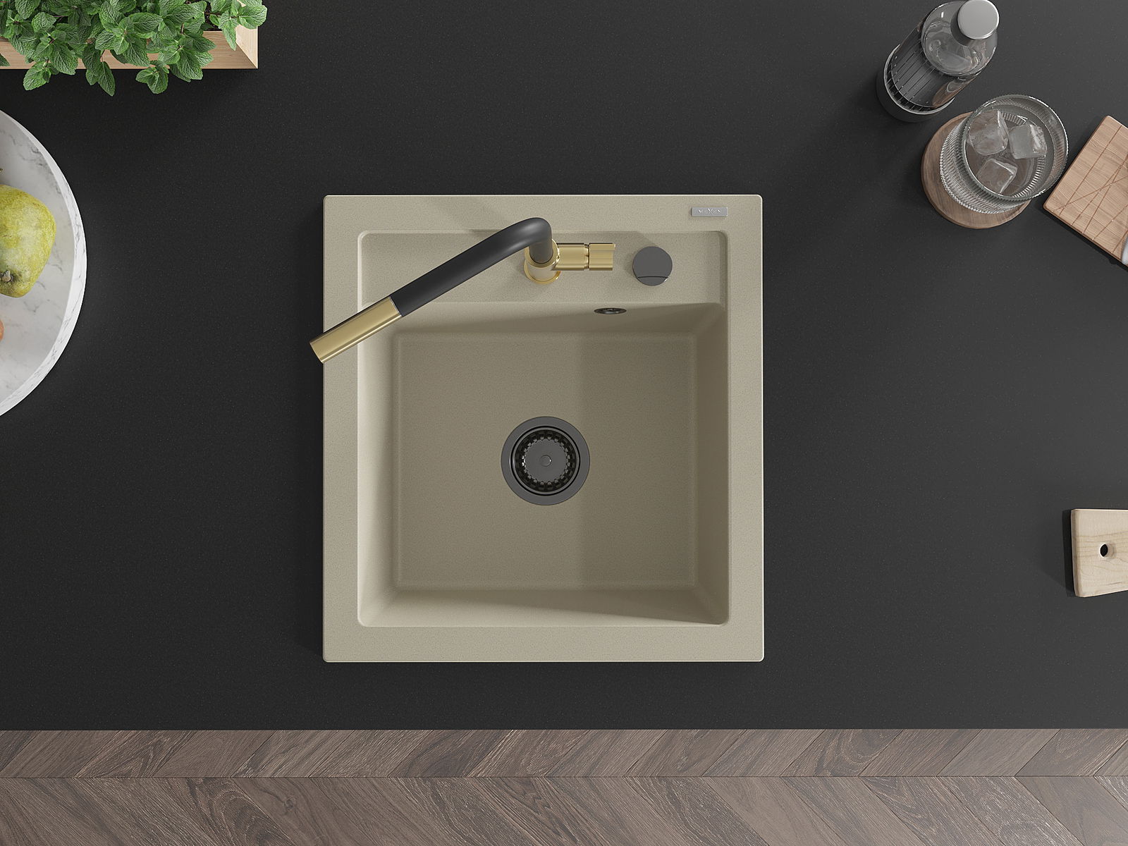 Povrch umývadla je odolný voči škvrnám a sfarbeniu, vďaka čomu sa ľahko čistí a zachováva si svoju farbu po dlhú dobu. Estetický a prakticky dopĺňajúci každú kuchyňu.