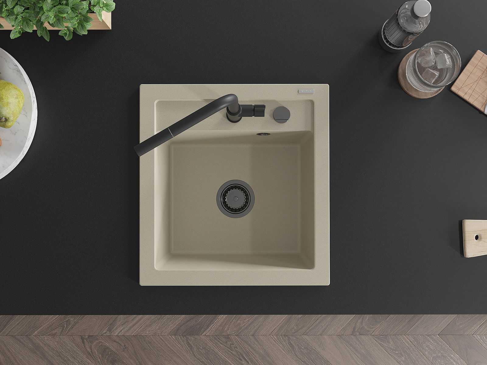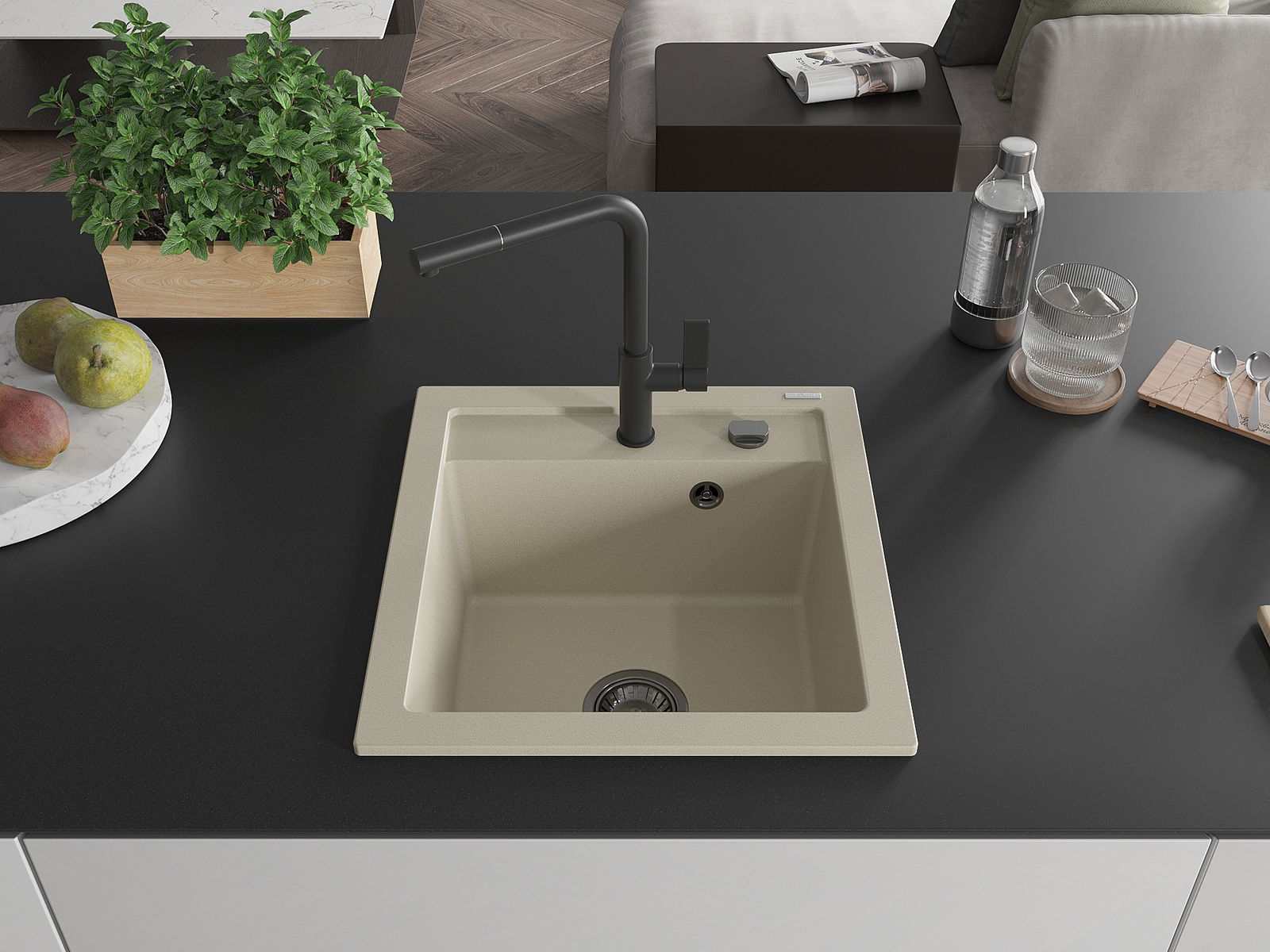 Povrch umývadla je odolný voči škvrnám a sfarbeniu, vďaka čomu sa ľahko čistí a zachováva si svoju farbu po dlhú dobu. Estetický a prakticky dopĺňajúci každú kuchyňu.