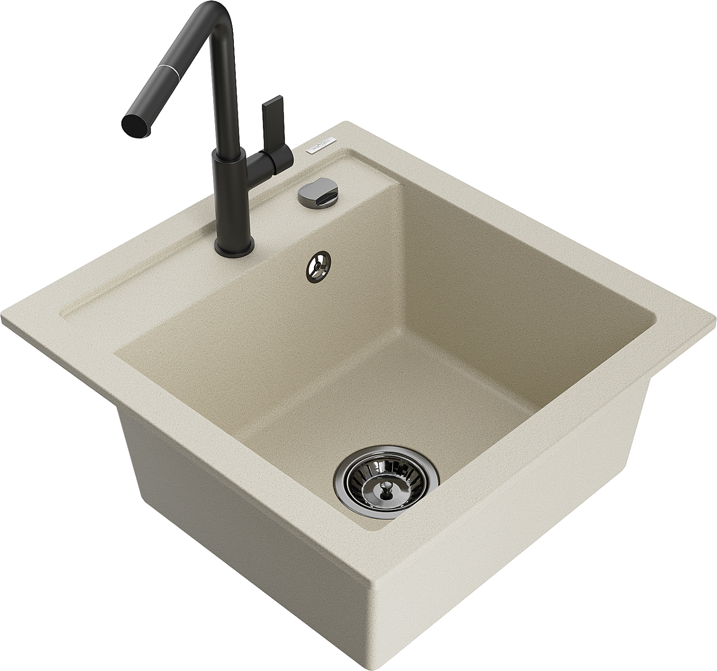Mexen Vito kuchynský drez 1-komorový s kuchynskou batériou Flora, béžový - 6503-69-670401-70-B