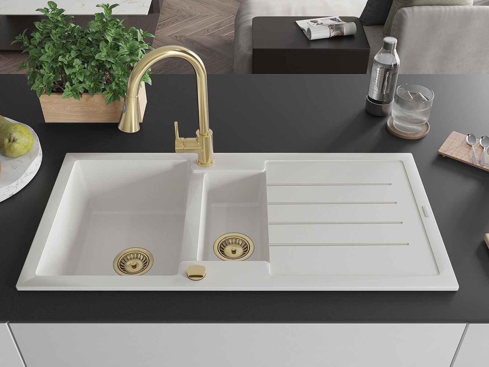 Povrch umývadla je odolný voči škvrnám a sfarbeniu, vďaka čomu sa ľahko čistí a zachováva si svoju farbu po dlhú dobu. Estetický a prakticky dopĺňajúci každú kuchyňu.