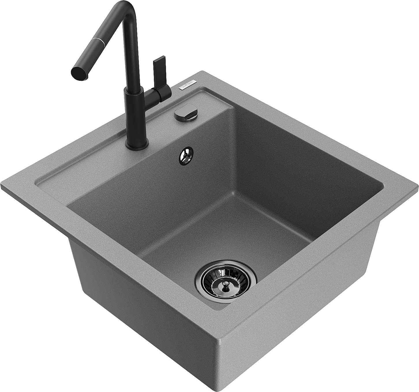 Mexen Vito granitový kuchynský drez 1-komorový s kuchynskou batériou Flora, sivý - 6503-71-670401-70-B