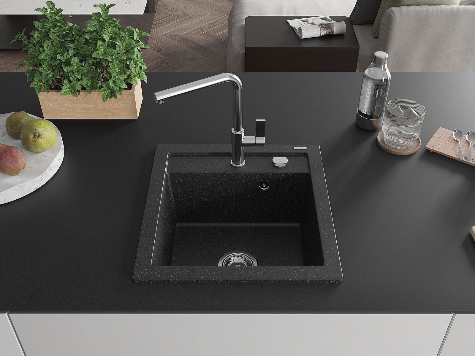 Povrch umývadla je odolný voči škvrnám a sfarbeniu, vďaka čomu sa ľahko čistí a zachováva si svoju farbu po dlhú dobu. Estetický a prakticky dopĺňajúci každú kuchyňu.