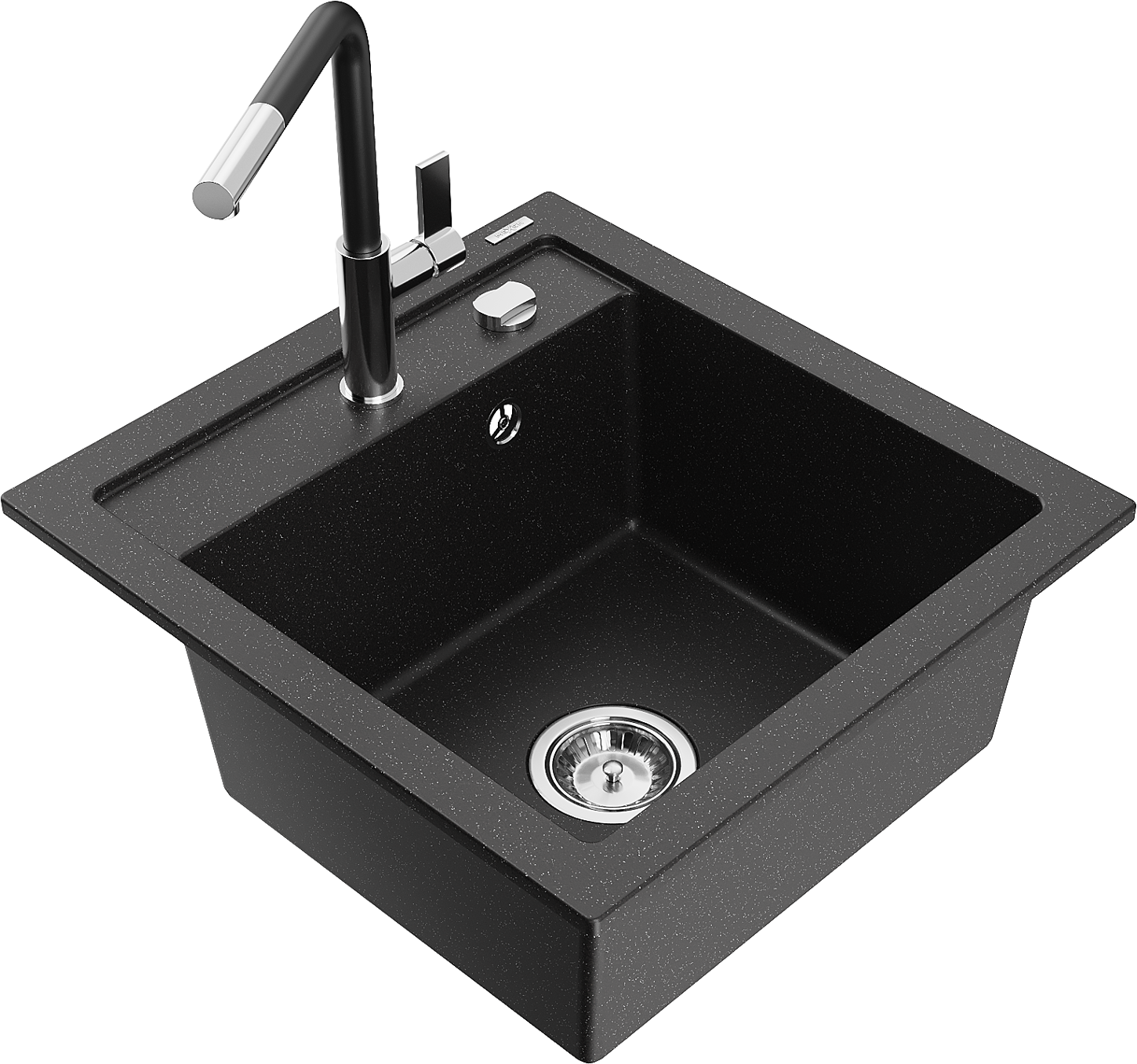 Mexen Vito granitový kuchynský drez s 1 komorou a kuchynskou batériou Flora, čierny/strieborný metalik - 6503-73-670401-07