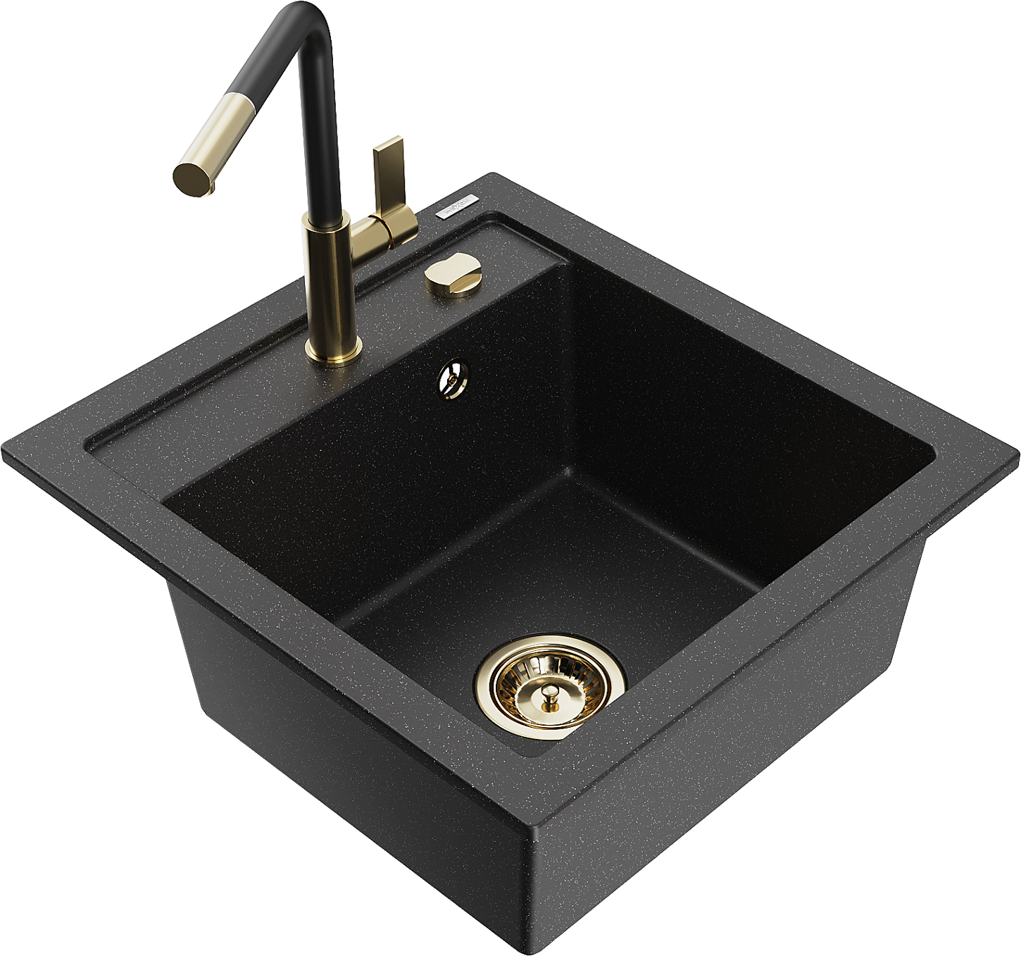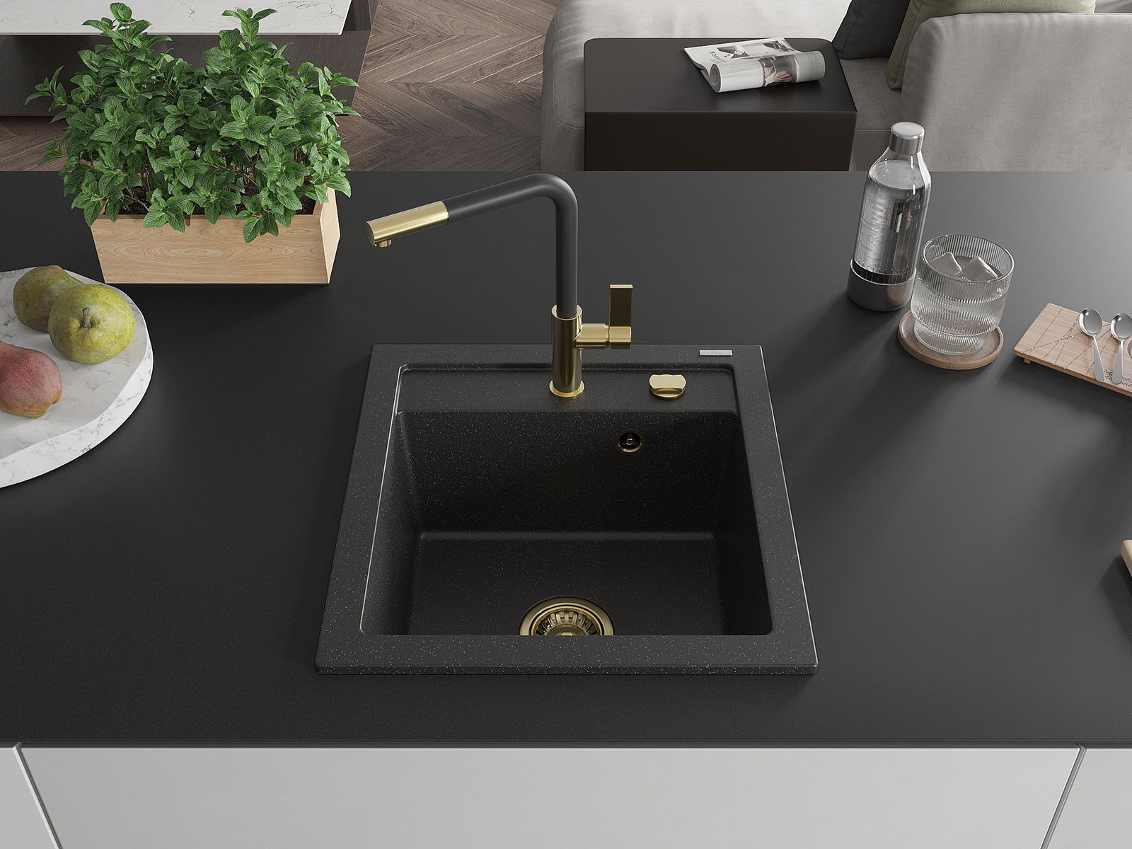 Mexen Vito žulový drez 1-komorový s kuchynskou batériou Flora, čierny/strieborný metalik - 6503-73-670401-57-G