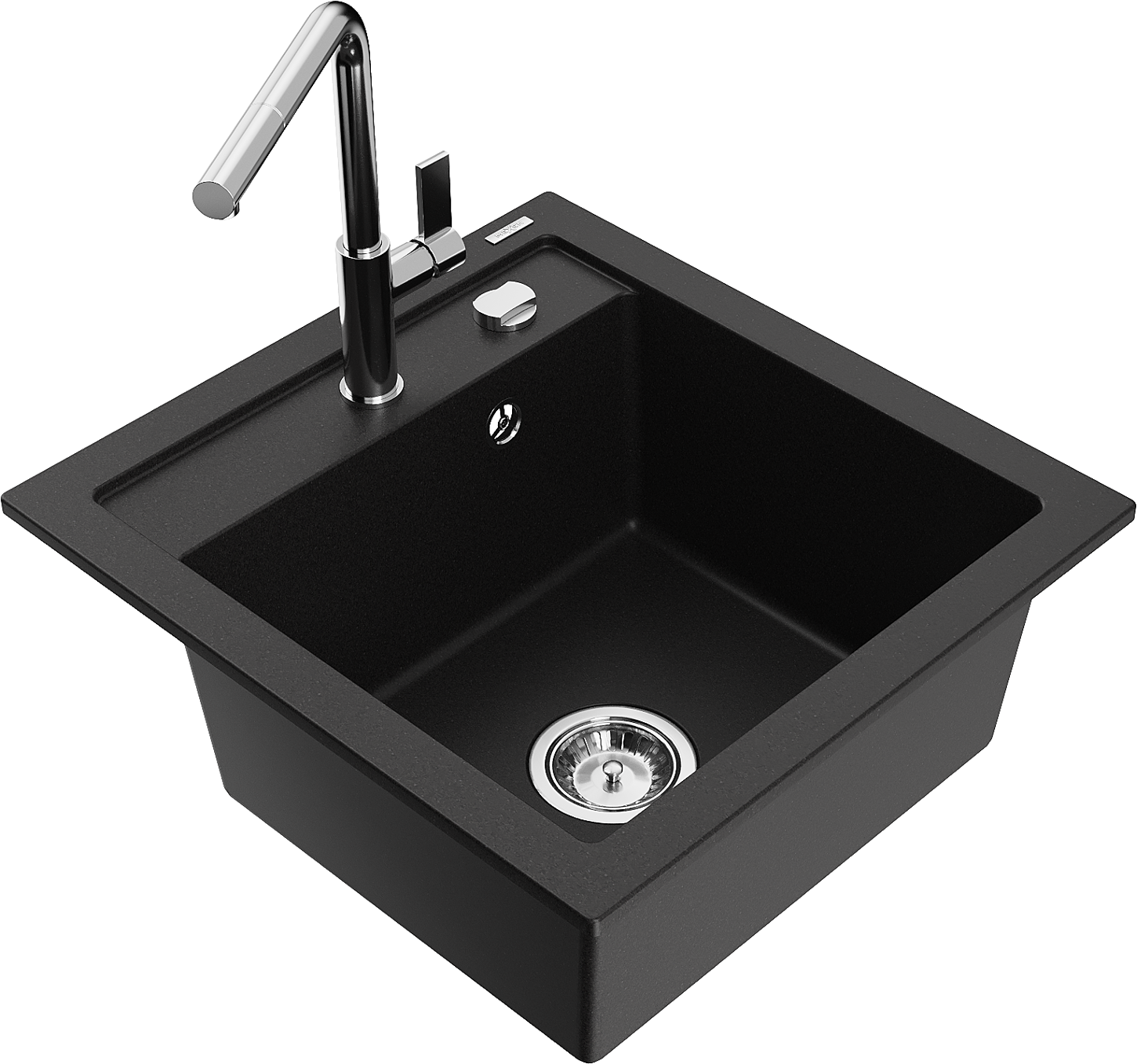 Mexen Vito žulový drez 1-komorový s kuchynskou batériou Flora, čierny - 6503-77-670401-00