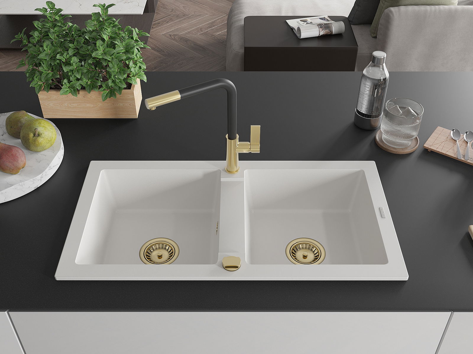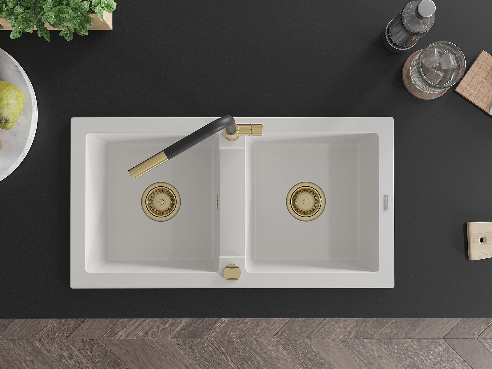 Povrch umývadla je odolný voči škvrnám a sfarbeniu, vďaka čomu sa ľahko čistí a zachováva si svoju farbu po dlhú dobu. Estetický a prakticky dopĺňajúci každú kuchyňu.