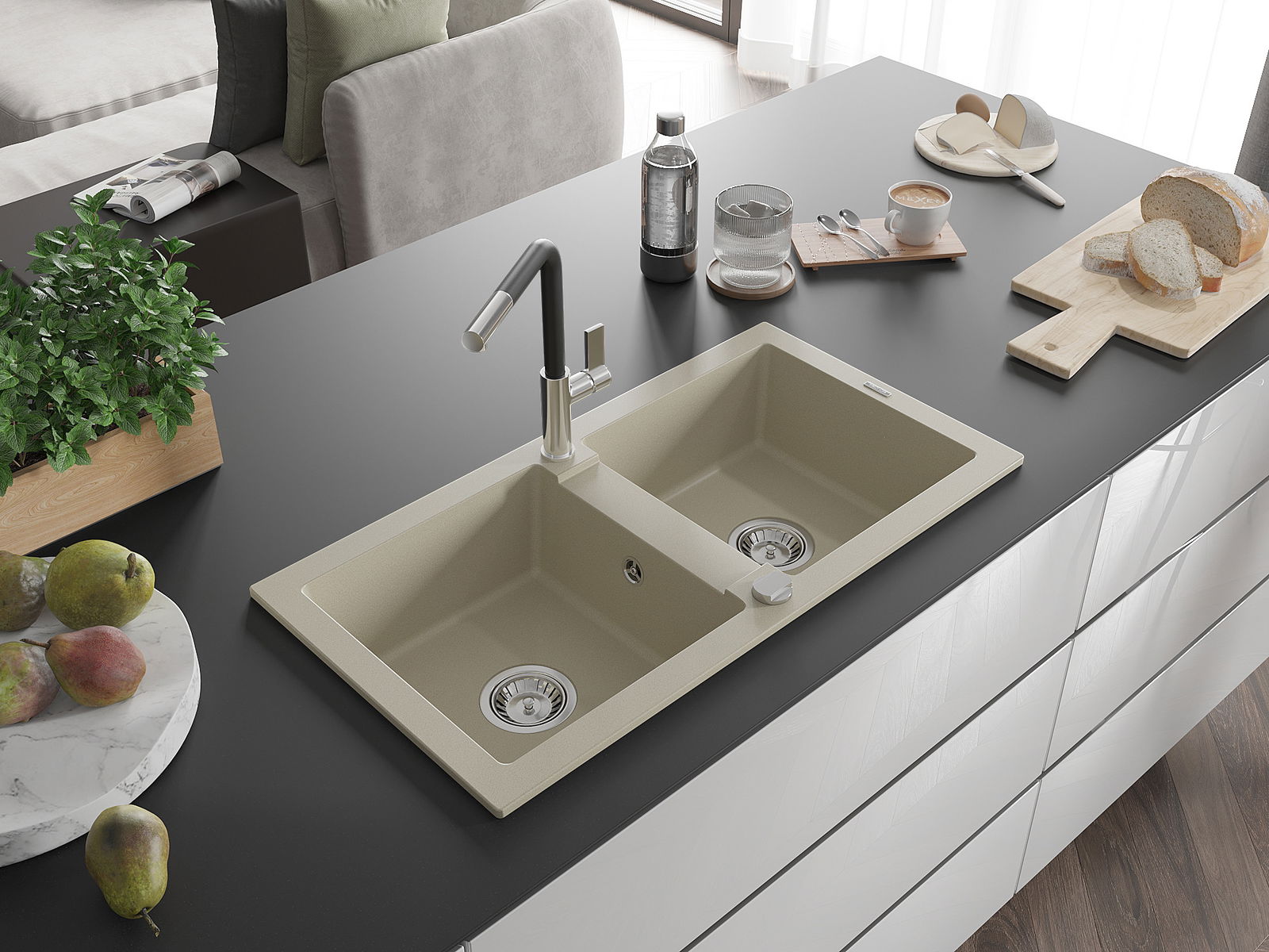 Povrch umývadla je odolný voči škvrnám a sfarbeniu, vďaka čomu sa ľahko čistí a zachováva si svoju farbu po dlhú dobu. Estetický a prakticky dopĺňajúci každú kuchyňu.