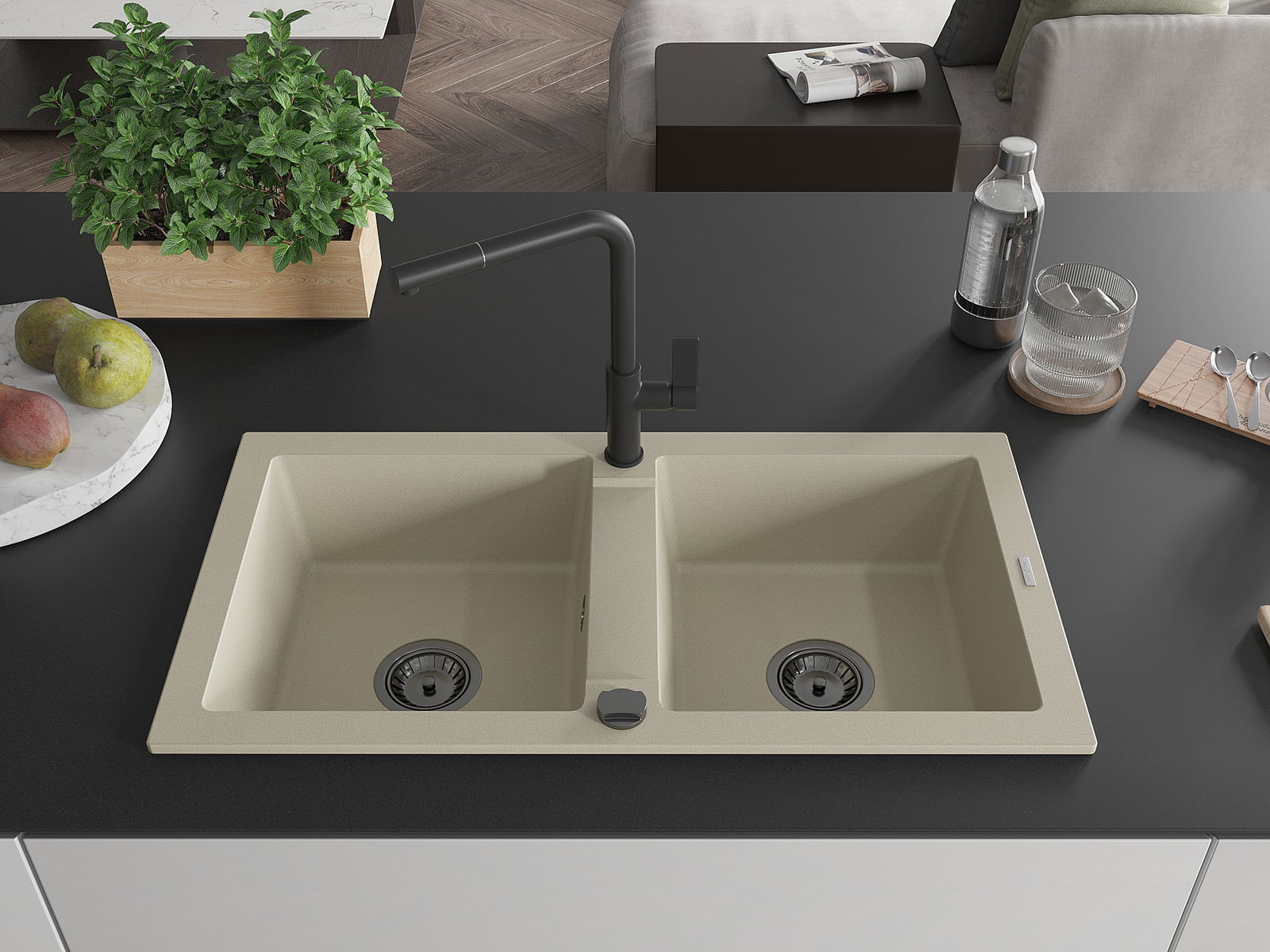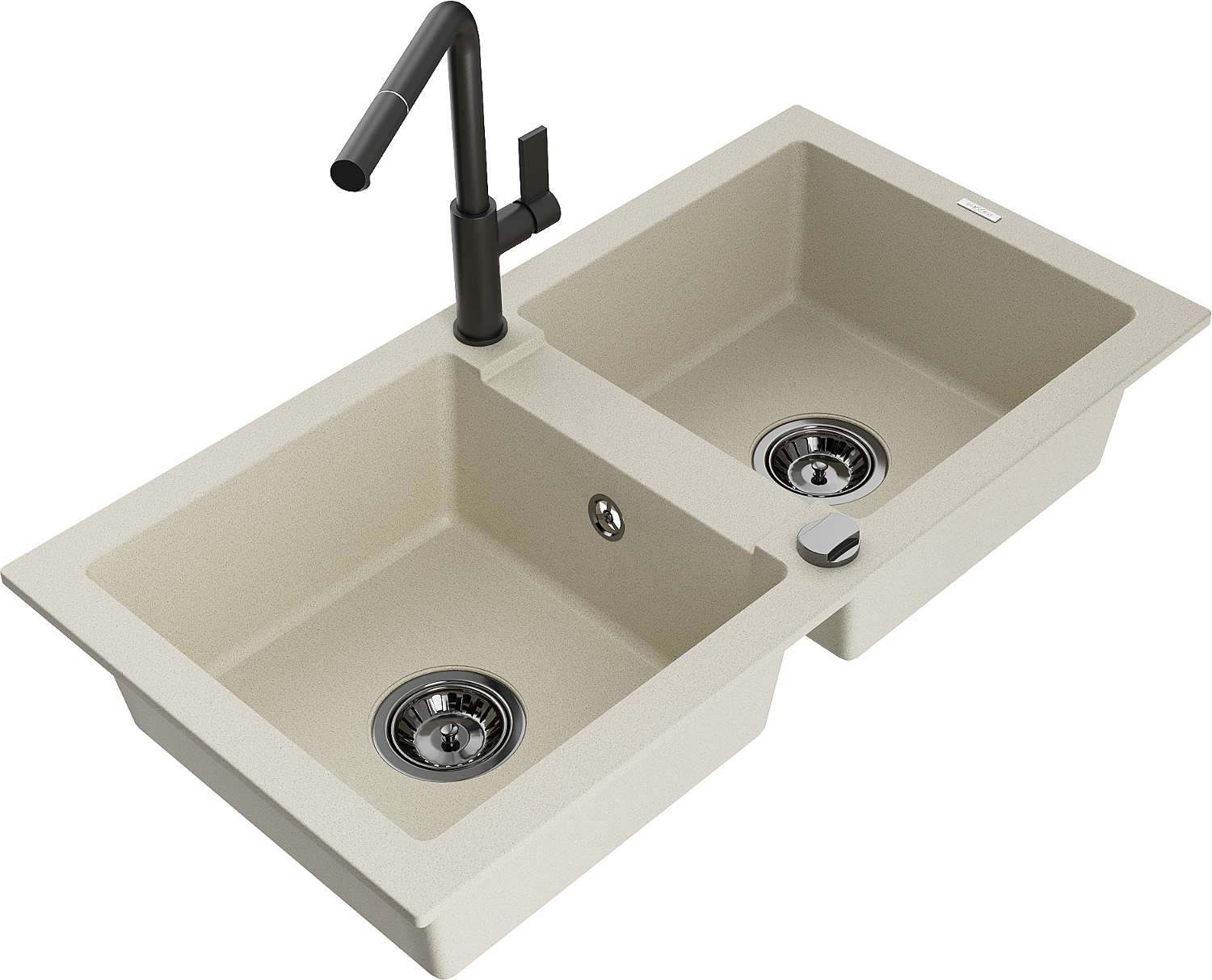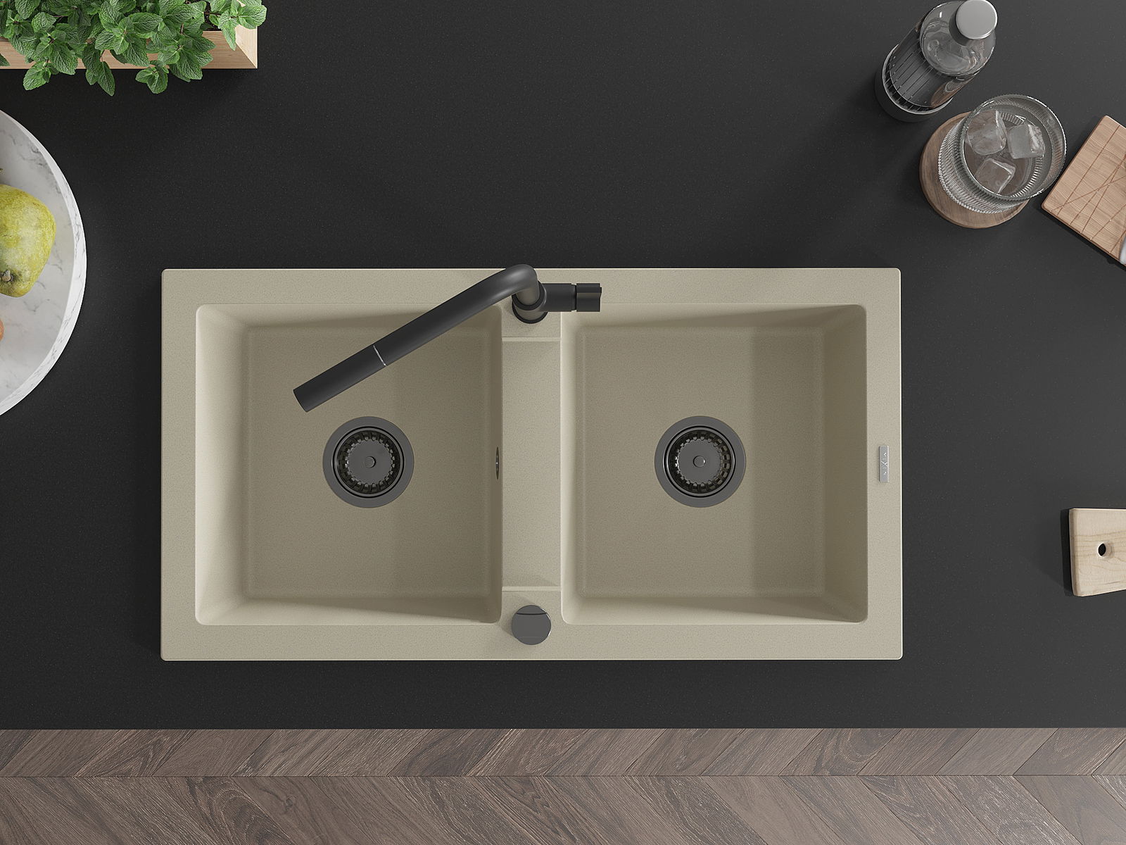 Mexen Mario dvojkomorový žulový drez s kuchynskou batériou Flora, béžový - 6504-69-670401-70-B