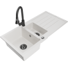 Povrch kuchynského drezu je odolný voči škvrnám a zafarbeniu, vďaka čomu sa ľahko udržiava a zachováva svoju farbu počas dlhého obdobia používania. Estetický a praktický doplnok pre každú kuchyňu.