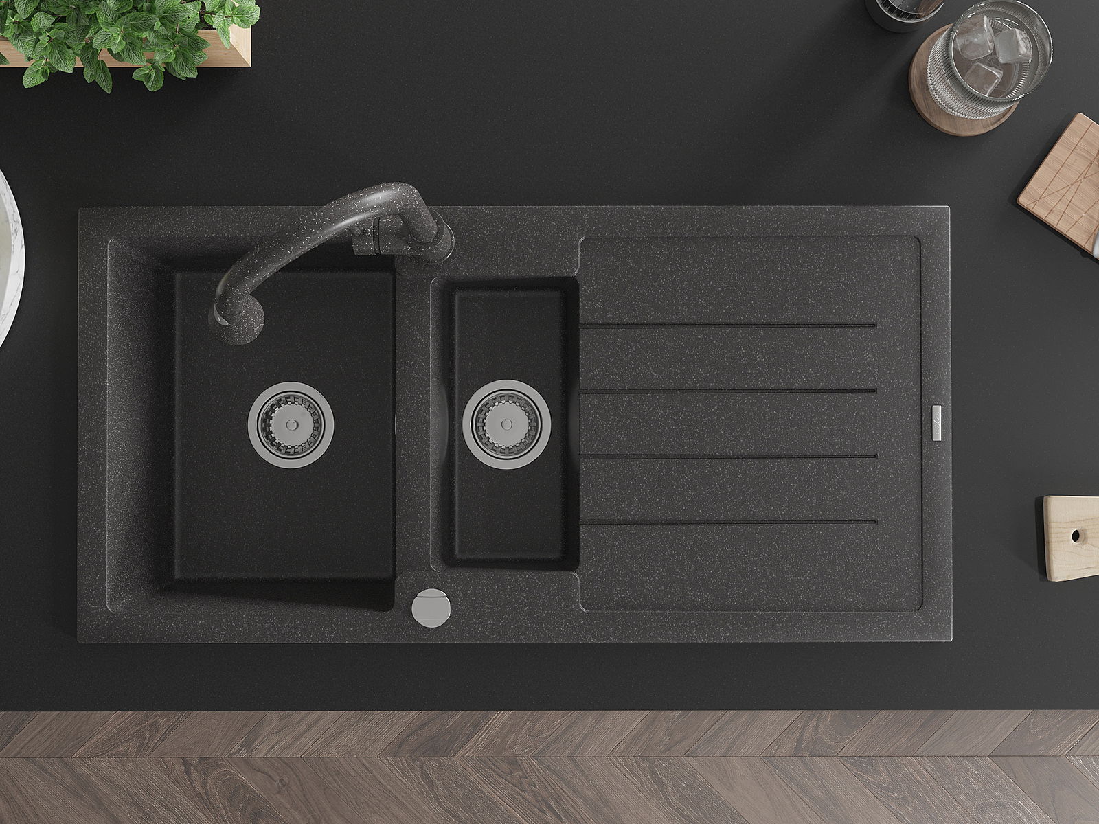 Povrch umývadla je odolný voči škvrnám a sfarbeniu, vďaka čomu sa ľahko čistí a zachováva si svoju farbu po dlhú dobu. Estetický a prakticky dopĺňajúci každú kuchyňu.