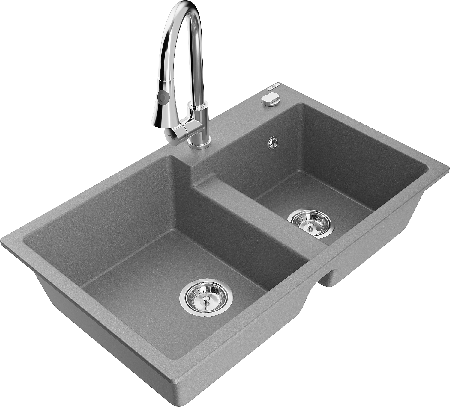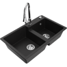Mexen Tomas dvojkomorový žulový drez s kuchynskou batériou Elia, šedý - 6516-71-670101-00