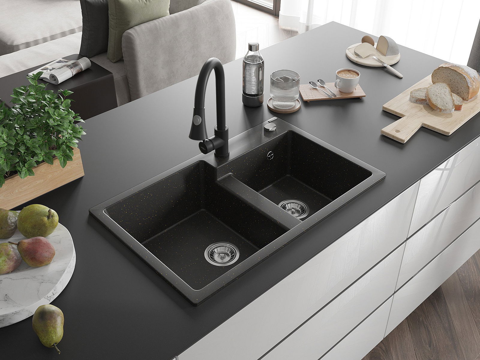 Povrch umývadla je odolný voči škvrnám a sfarbeniu, vďaka čomu sa ľahko čistí a zachováva si svoju farbu po dlhú dobu. Estetický a prakticky dopĺňajúci každú kuchyňu.