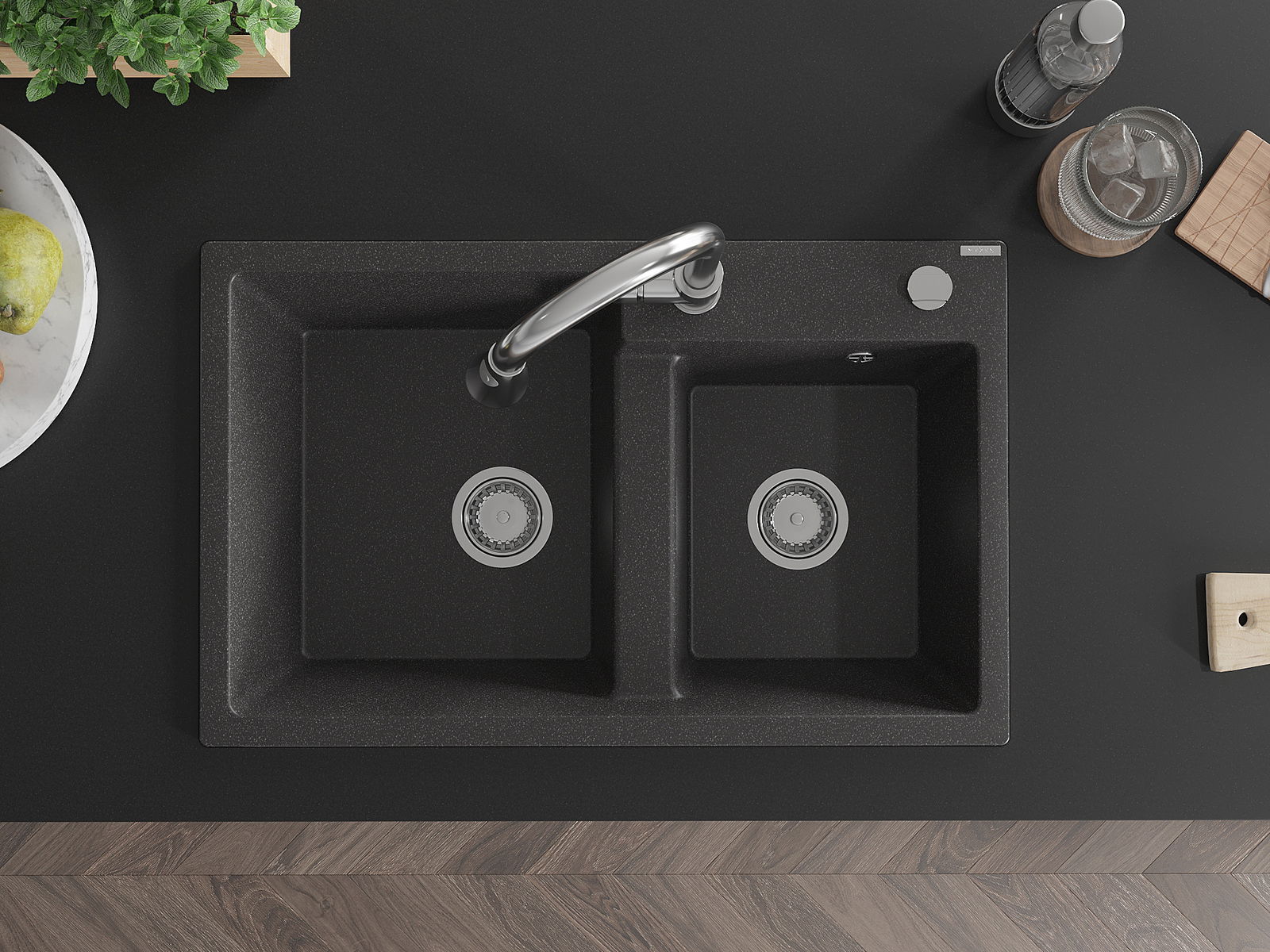 Povrch umývadla je odolný voči škvrnám a sfarbeniu, vďaka čomu sa ľahko čistí a zachováva si svoju farbu po dlhú dobu. Estetický a prakticky dopĺňajúci každú kuchyňu.