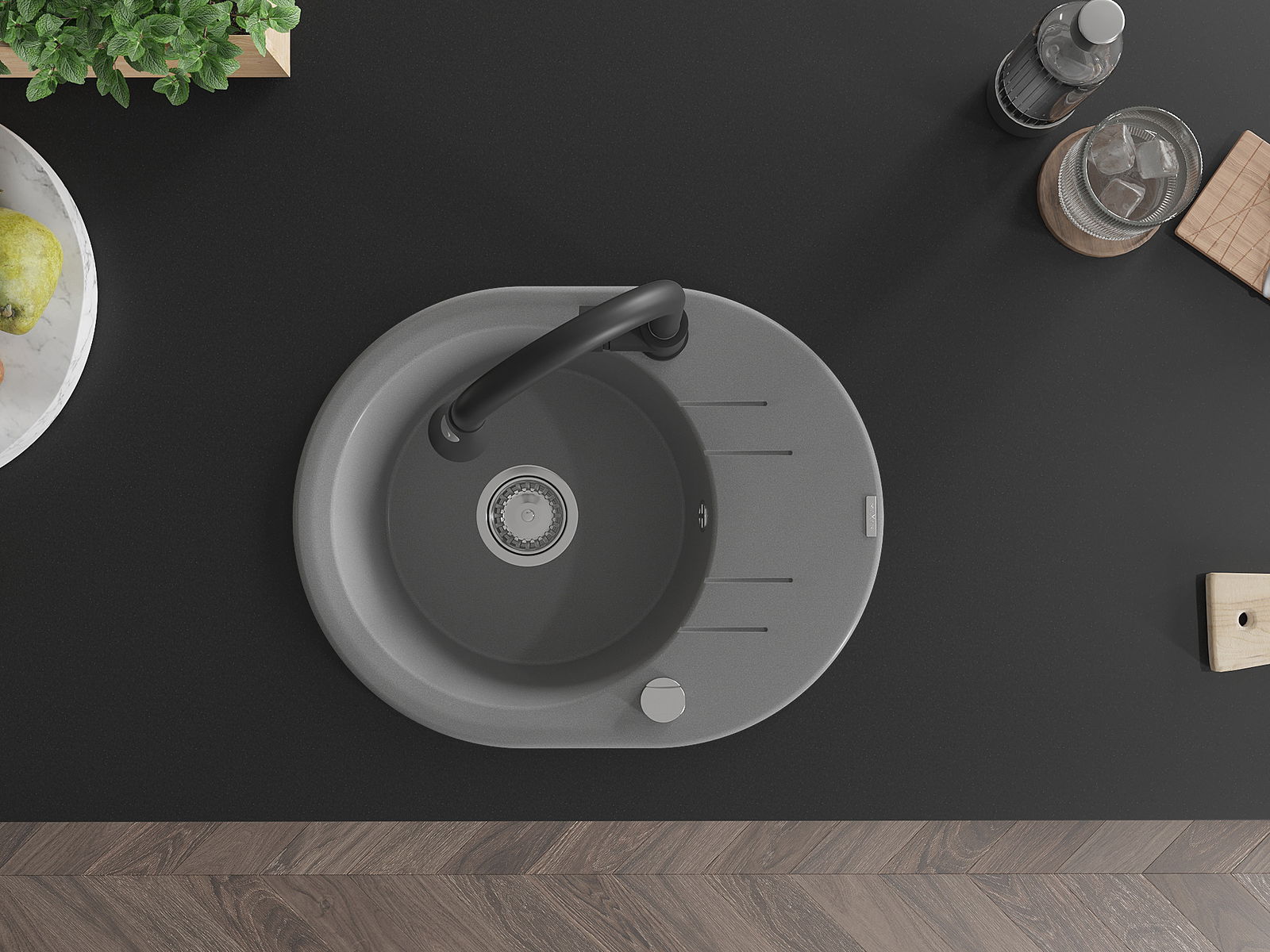Povrch umývadla je odolný voči škvrnám a sfarbeniu, vďaka čomu sa ľahko čistí a zachováva si svoju farbu po dlhú dobu. Estetický a prakticky dopĺňajúci každú kuchyňu.