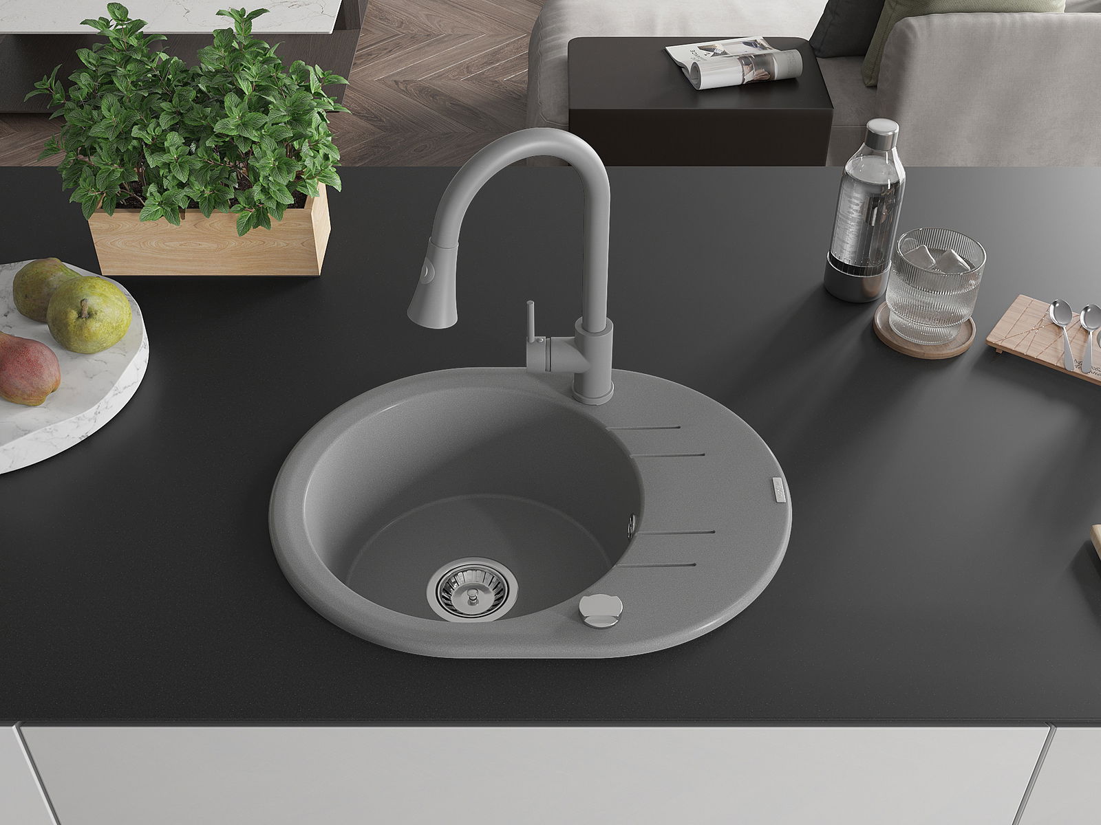 Povrch umývadla je odolný voči škvrnám a sfarbeniu, vďaka čomu sa ľahko čistí a zachováva si svoju farbu po dlhú dobu. Estetický a prakticky dopĺňajúci každú kuchyňu.