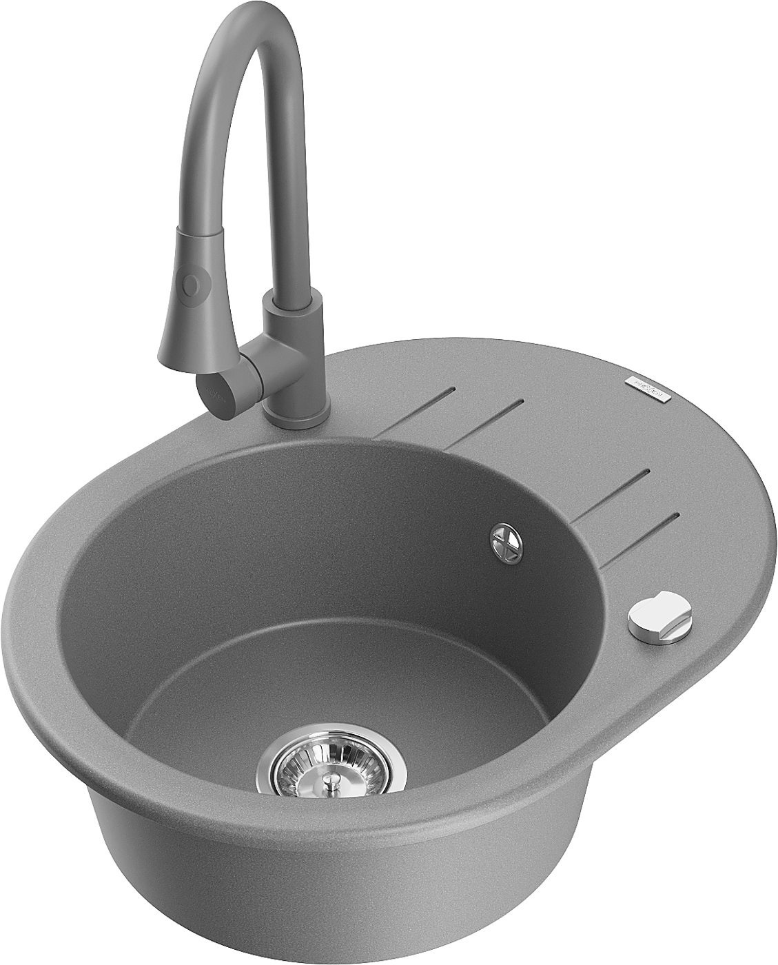 Mexen Kevin žulový kuchynský drez s 1 komorou, odkvapom a kuchynskou batériou Elia, sivá - 6517-71-670101-71
