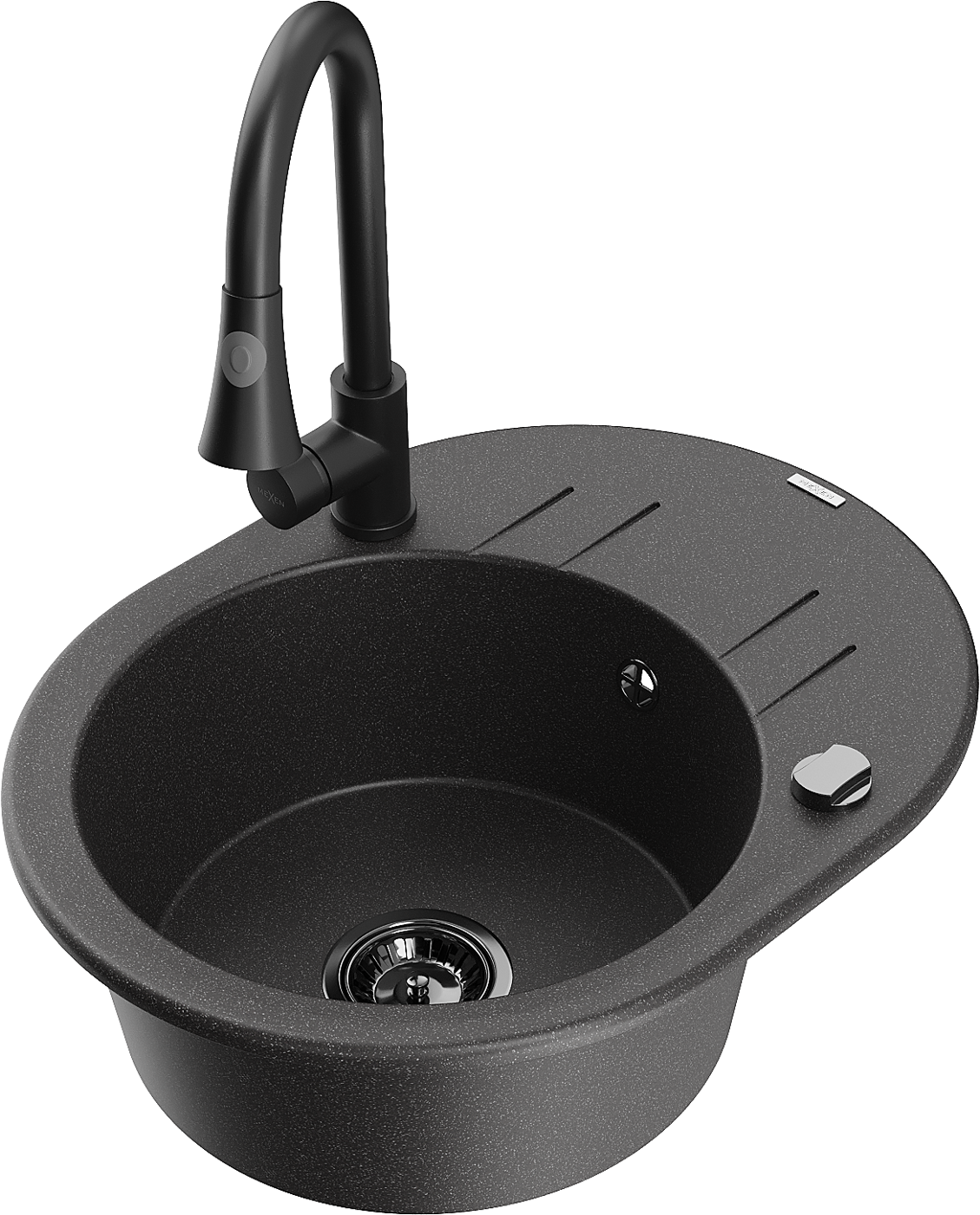 Mexen Kevin žulový drez s 1 komorou a odkvapávačom a kuchynskou batériou Elia, čierny bodkovaný - 6517-76-670101-70-B