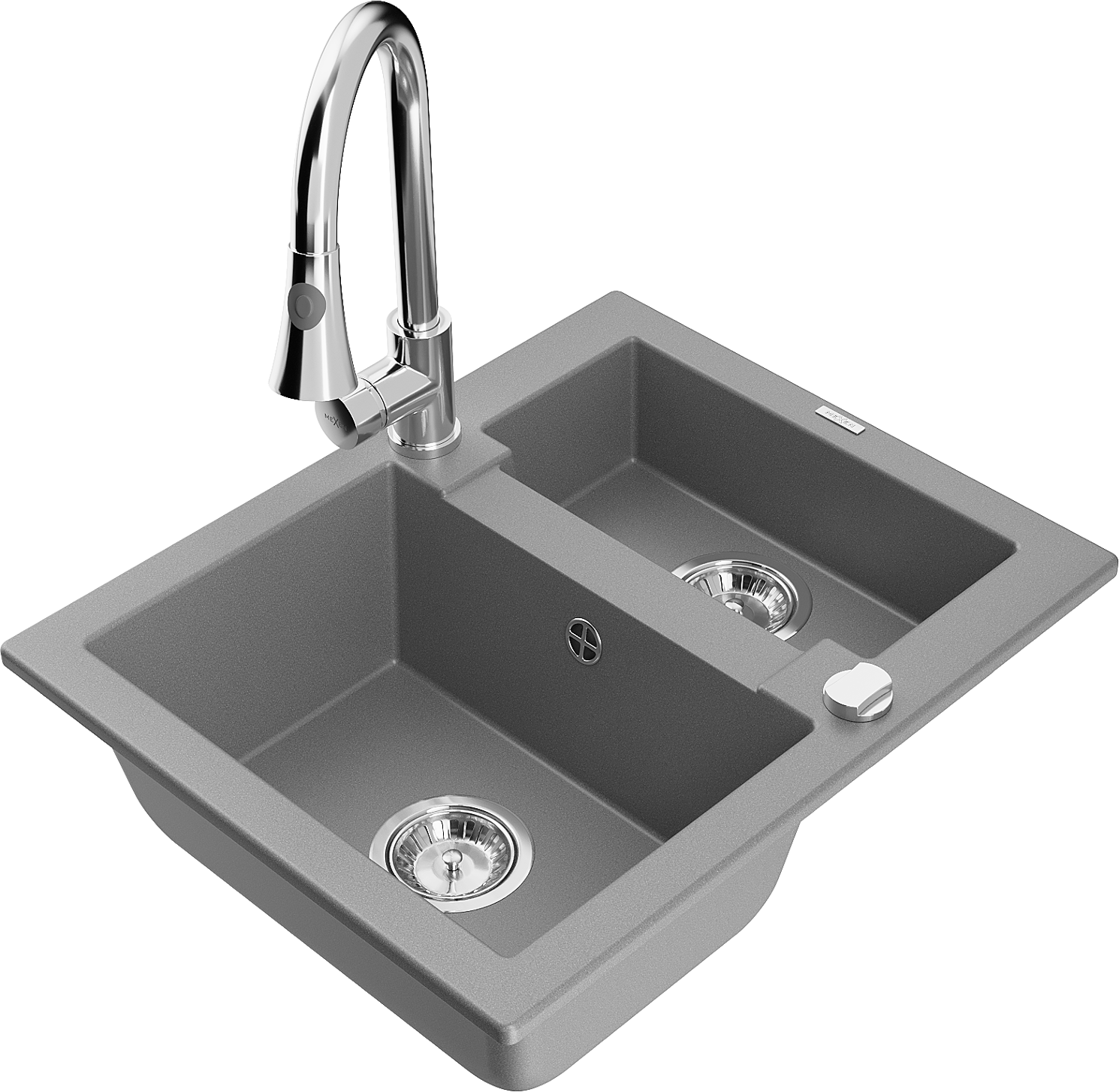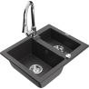 Mexen Carlos žulový kuchynský dvojdrez s batériou Elia, sivý - 6518-71-670101-00