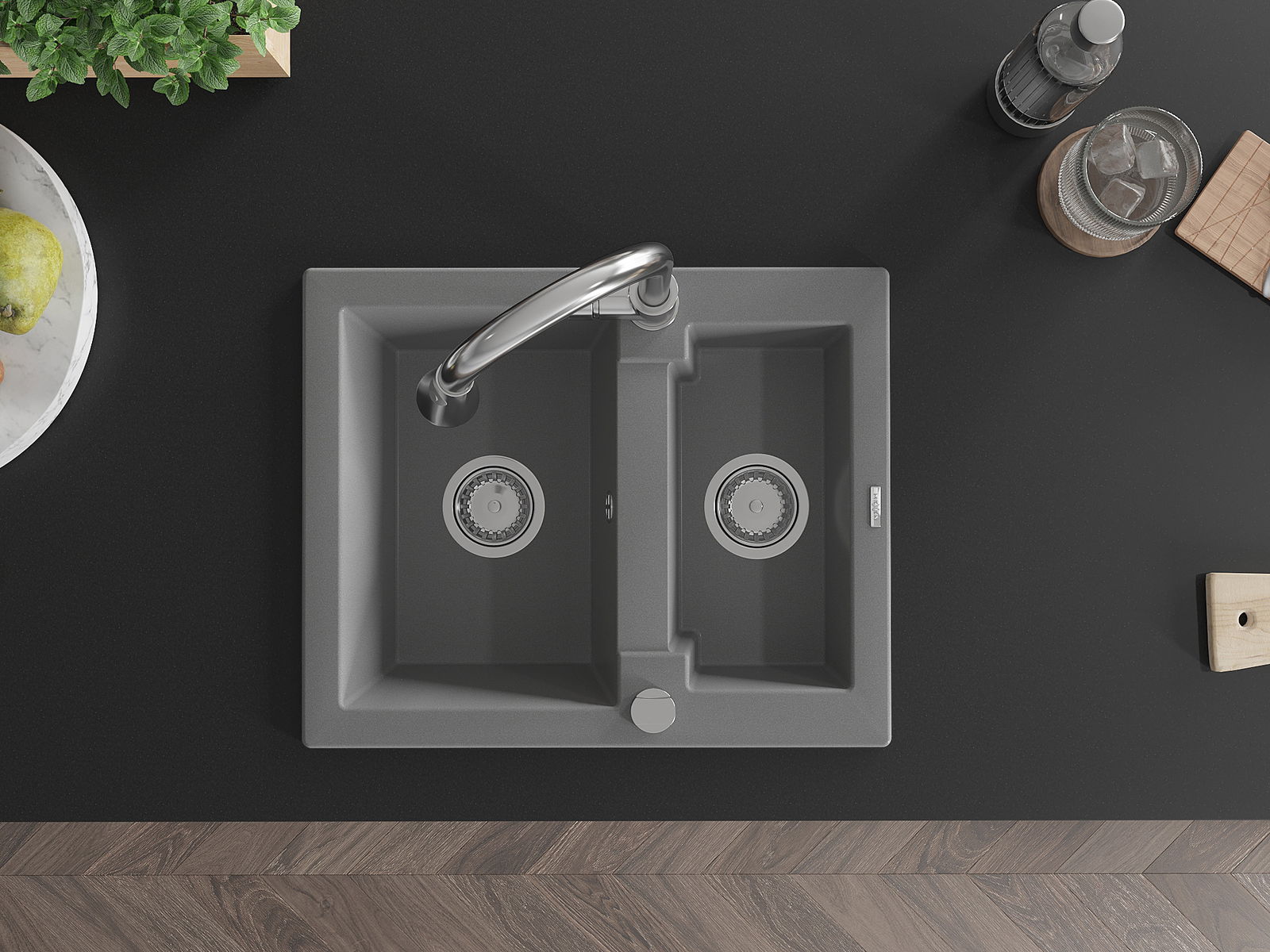 Povrch kuchynského drezu je odolný voči škvrnám a zafarbeniu, vďaka čomu sa ľahko udržiava a zachováva svoju farbu počas dlhého obdobia používania. Estetický a praktický doplnok pre každú kuchyňu.