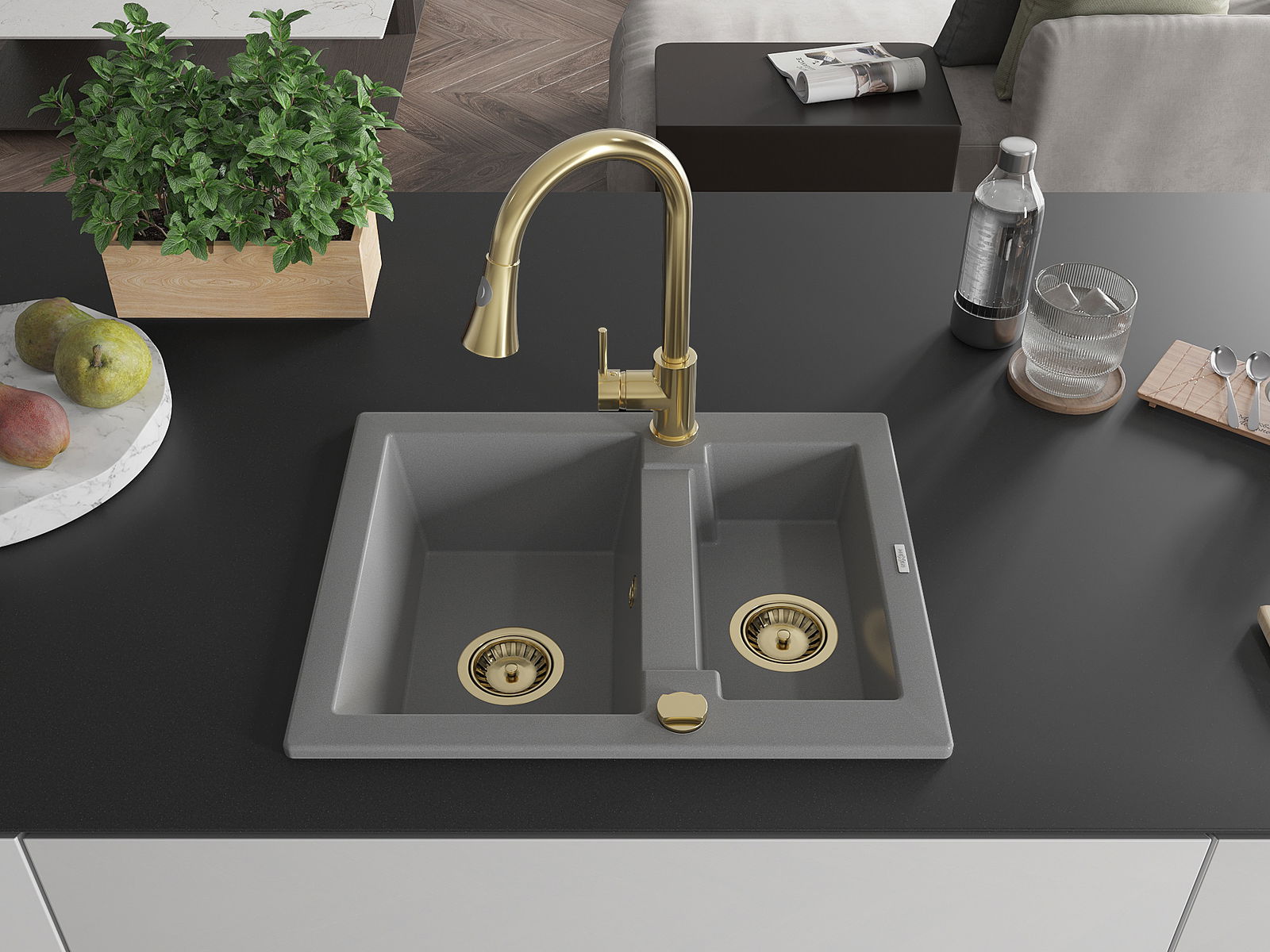 Povrch umývadla je odolný voči škvrnám a sfarbeniu, vďaka čomu sa ľahko čistí a zachováva si svoju farbu po dlhú dobu. Estetický a prakticky dopĺňajúci každú kuchyňu.