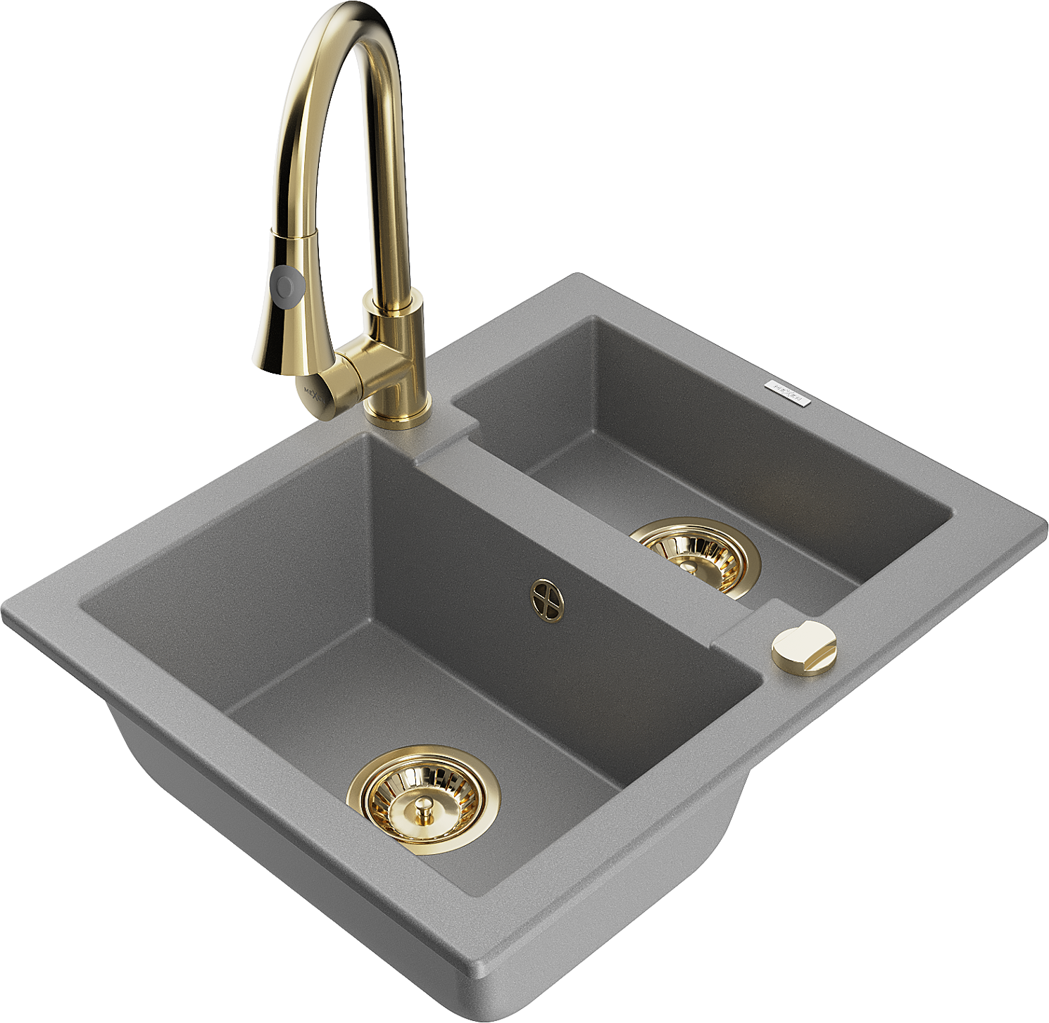 Mexen Carlos granitový kuchynský drez 1,5-komorový s kuchynskou batériou Elia, sivý - 6518-71-670101-50