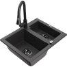 Mexen Carlos žulový drez 1,5-komorový s kuchynskou batériou Elia, čierny/strieborný metalik - 6518-73-670101-70-B