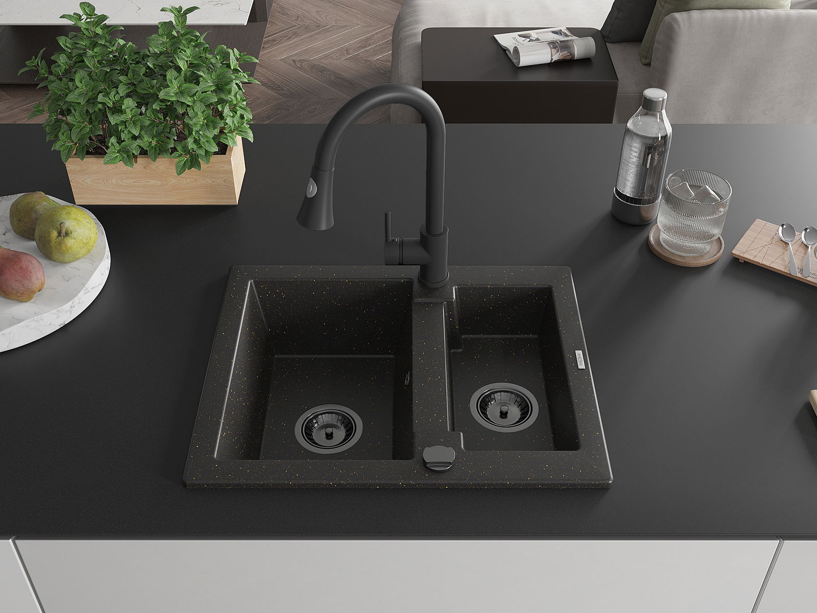 Povrch umývadla je odolný voči škvrnám a sfarbeniu, vďaka čomu sa ľahko čistí a zachováva si svoju farbu po dlhú dobu. Estetický a prakticky dopĺňajúci každú kuchyňu.