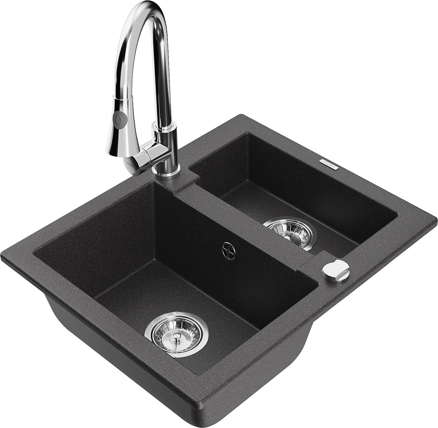 Mexen Carlos žulový drez 1,5-komorový s kuchynskou batériou Elia, čierny škvrnitý - 6518-76-670101-00