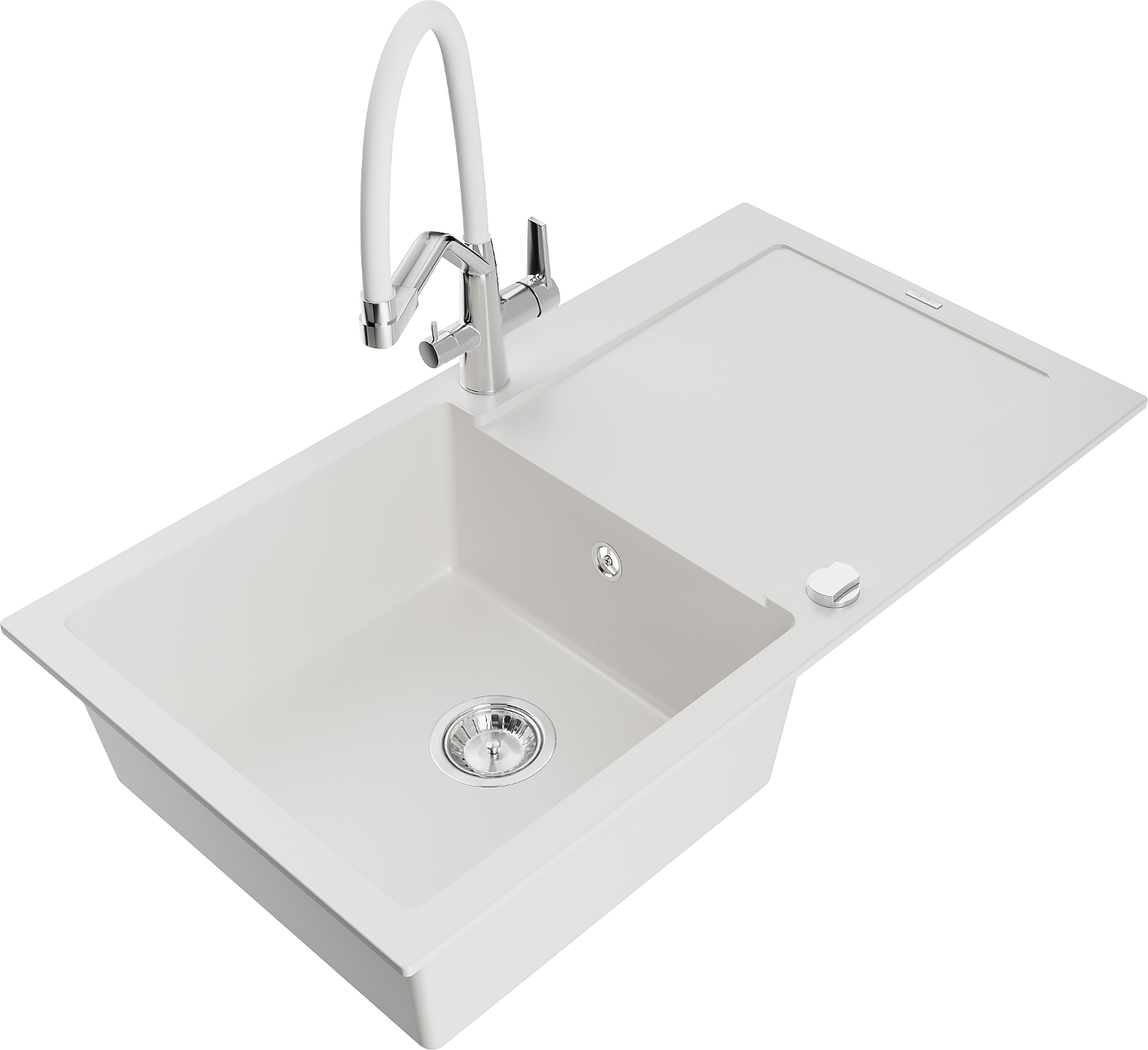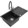 Mexen Leo žulový kuchynský drez s 1 komorou a odkvapkávačom a kuchynskou batériou Duo, biely - 6501-20-671701-02