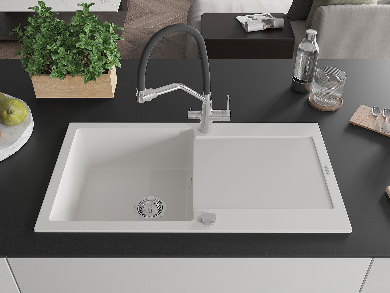 Povrch umývadla je odolný voči škvrnám a sfarbeniu, vďaka čomu sa ľahko čistí a zachováva si svoju farbu po dlhú dobu. Estetický a prakticky dopĺňajúci každú kuchyňu.
