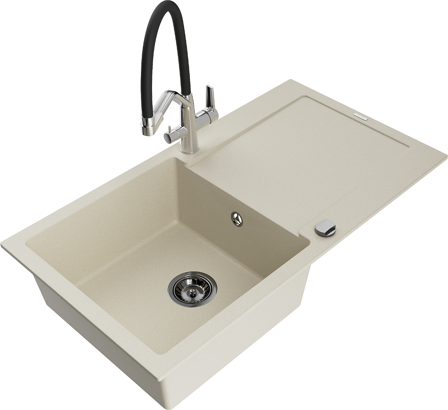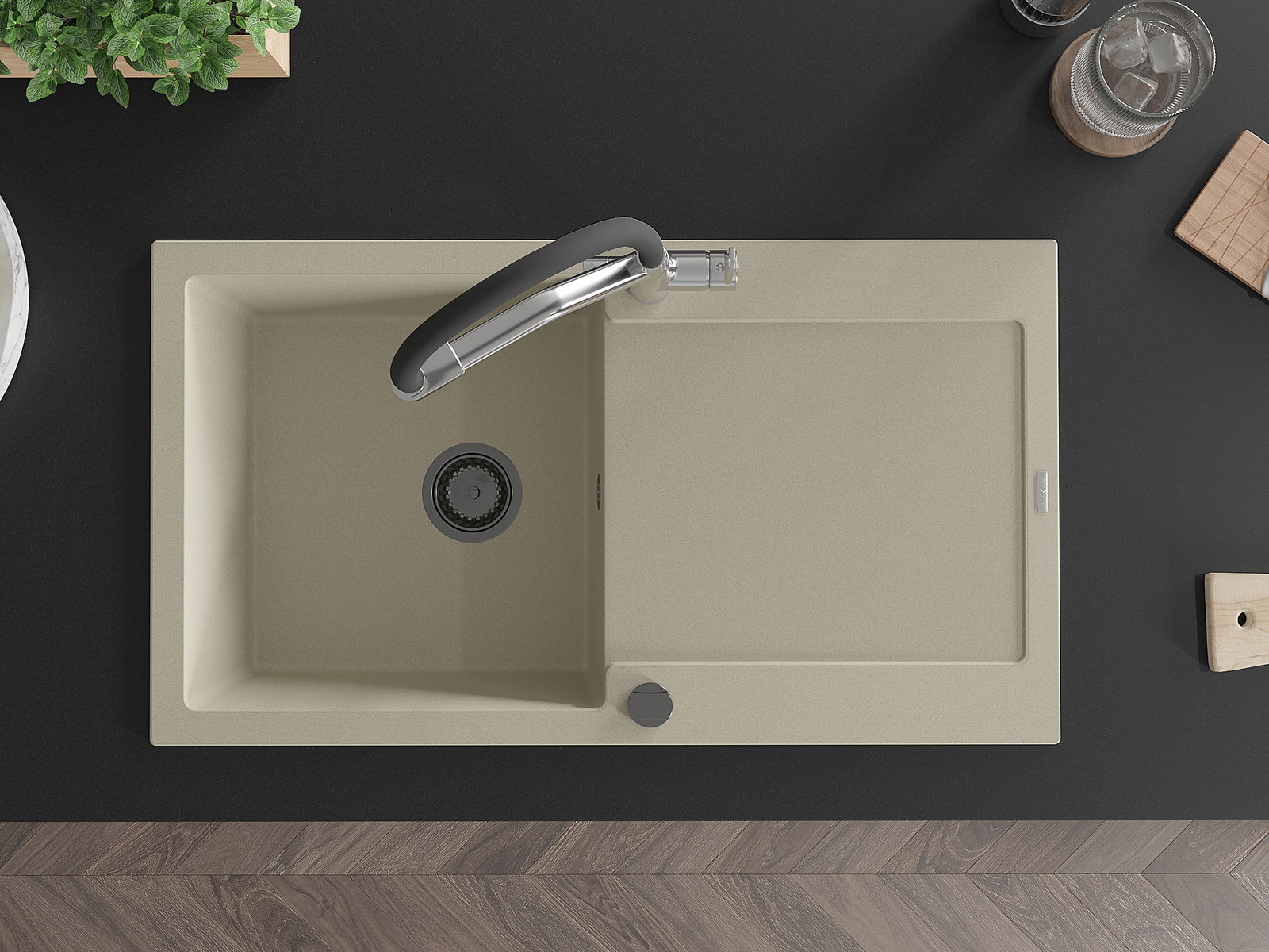 Mexen Leo žulový drez s odkvapkávačom a kuchynskou batériou Duo, béžový - 6501-69-671701-07-B