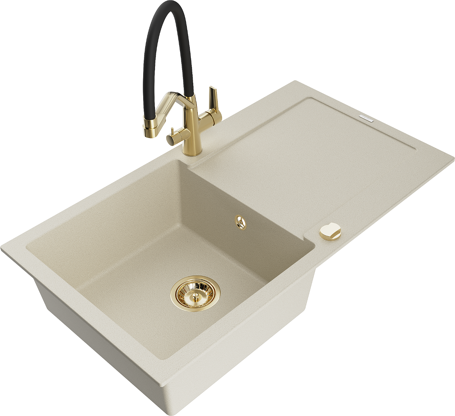 Mexen Leo granitový drez 1-komorový s odkvapkávačom a kuchynskou batériou Duo, béžový - 6501-69-671701-57-G