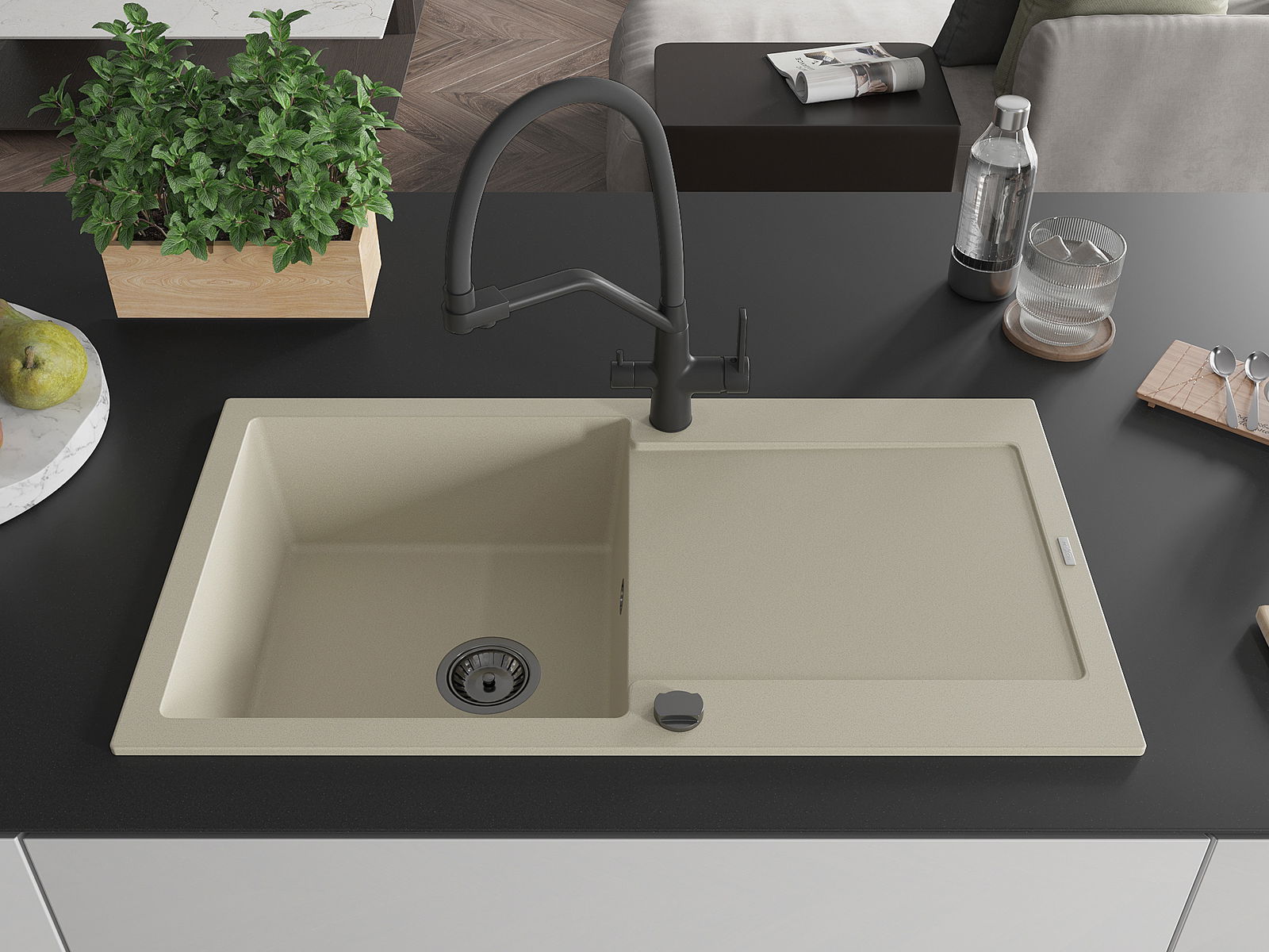 Povrch umývadla je odolný voči škvrnám a sfarbeniu, vďaka čomu sa ľahko čistí a zachováva si svoju farbu po dlhú dobu. Estetický a prakticky dopĺňajúci každú kuchyňu.