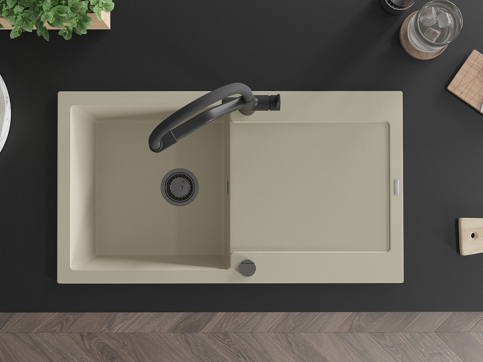 Mexen Leo žulový drez s 1 misou s odkvapkávačom a kuchynskou batériou Duo, béžový - 6501-69-671701-70-B