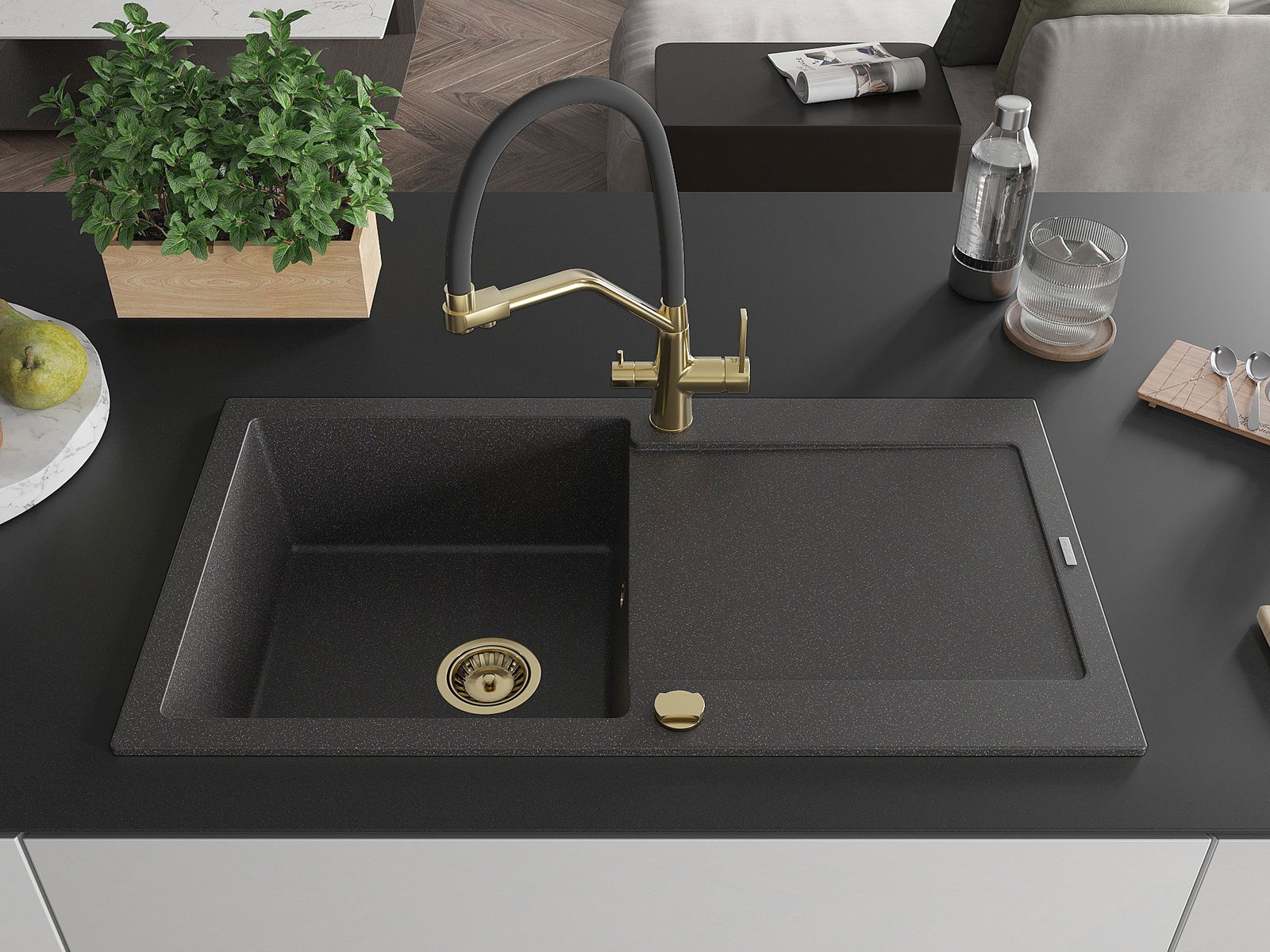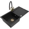 Mexen Leo granitový kuchynský drez s 1 komorou, odkvapkávačom a kuchynskou batériou Duo, čierny s bodkami - 6501-76-671701-57-G